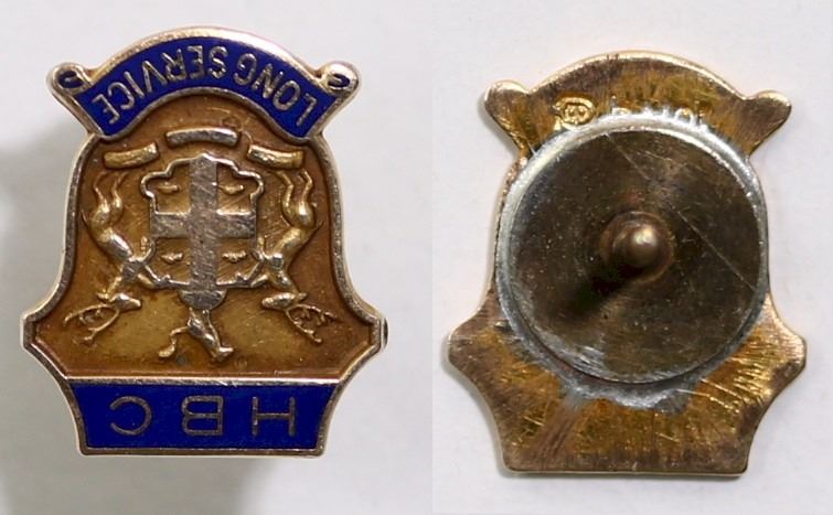 Hudson's Bay; Blue enameled and Gold “HBC Long Service” Pin. 10kt Gold w/repaired back. 1,4gr. See Pic.