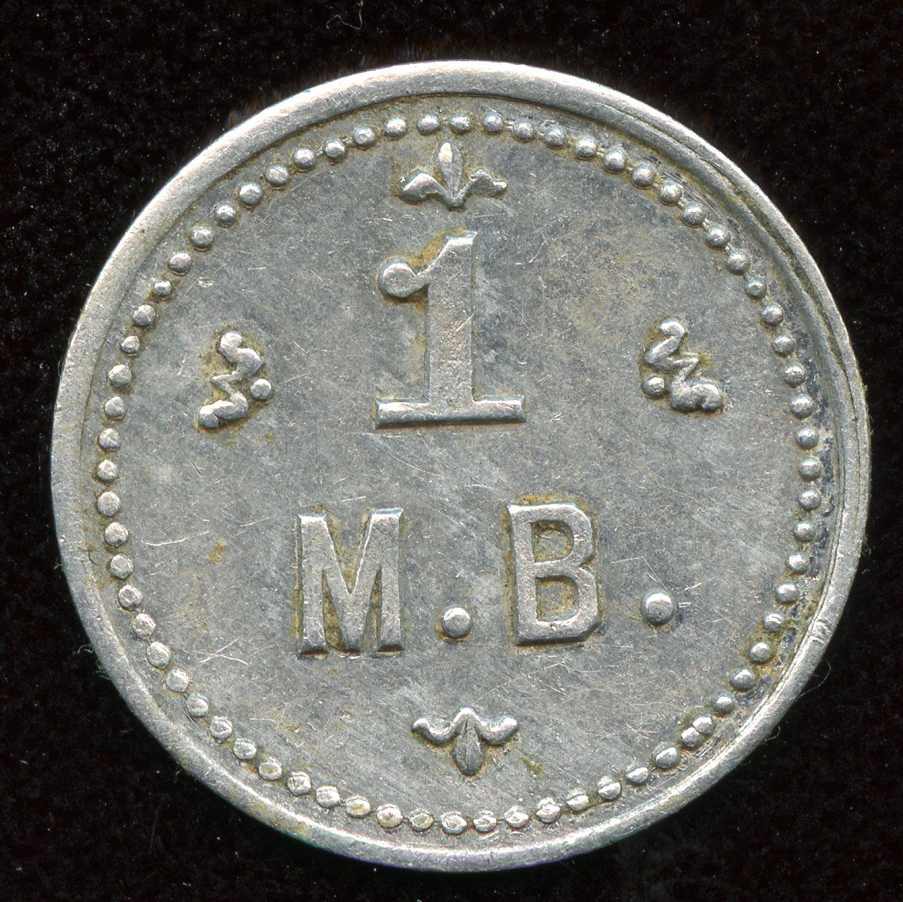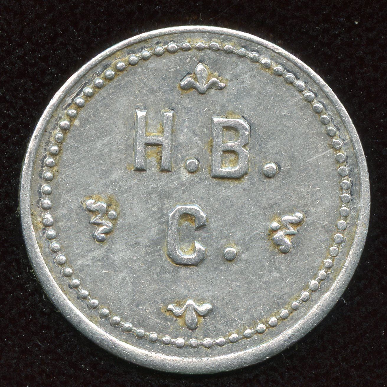 H.B./C. rev. 1/M.B. Alum. 25mm. Gingras 245. Rare. VF.