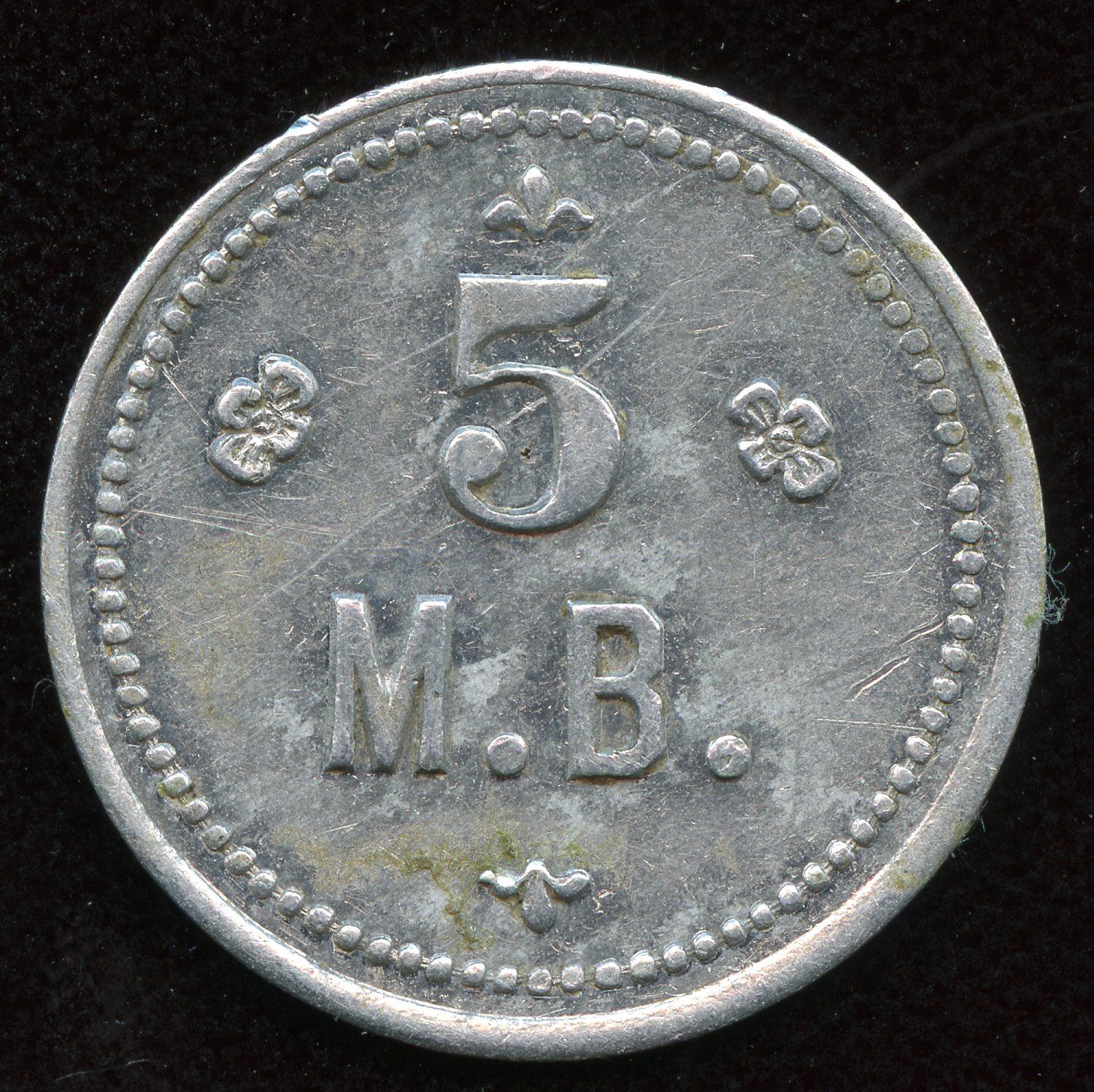 H.B./C. rev. 5/M.B. Unlisted by Gingras, but would be 245a. An example was last sold Toronto Coin Expo Fall Sale 2017 that sold for $3600 with hammer fee. That previously Lot #1335, Moore [Torex] Auction, Oct. 2011 where sold for $3,750. Hammer. Exceedingly rare. VF.