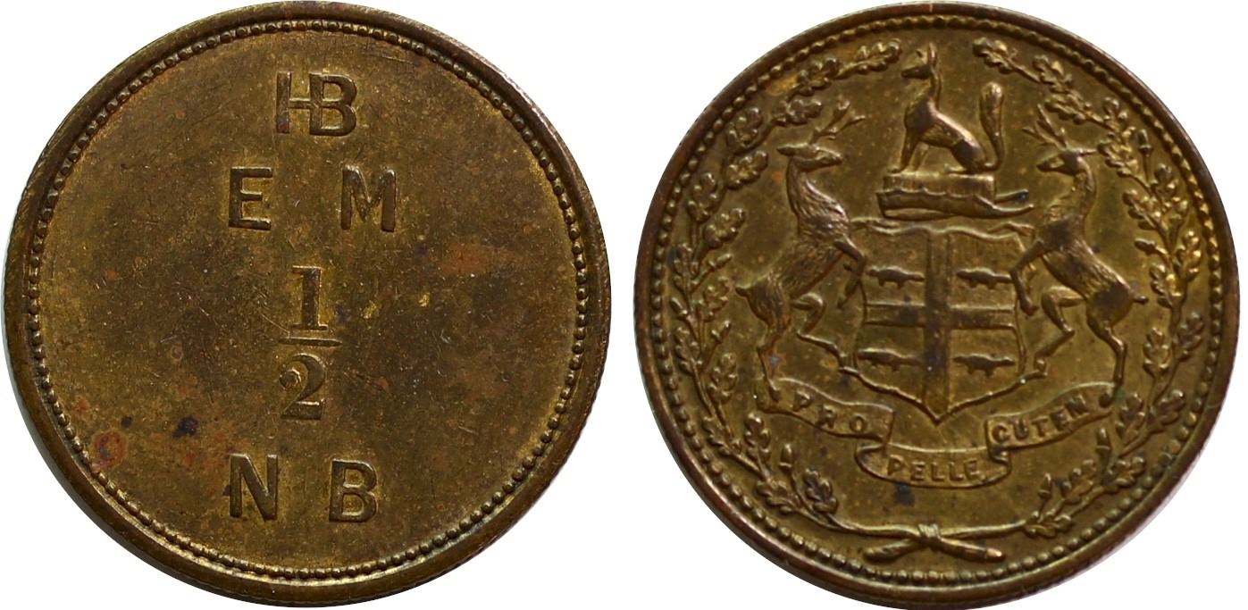 Hudson's Bay; FT-2, Breton #927, AU-UNC Eastmain 1/2 Made Beaver, Moose Factory, Circa 1857.