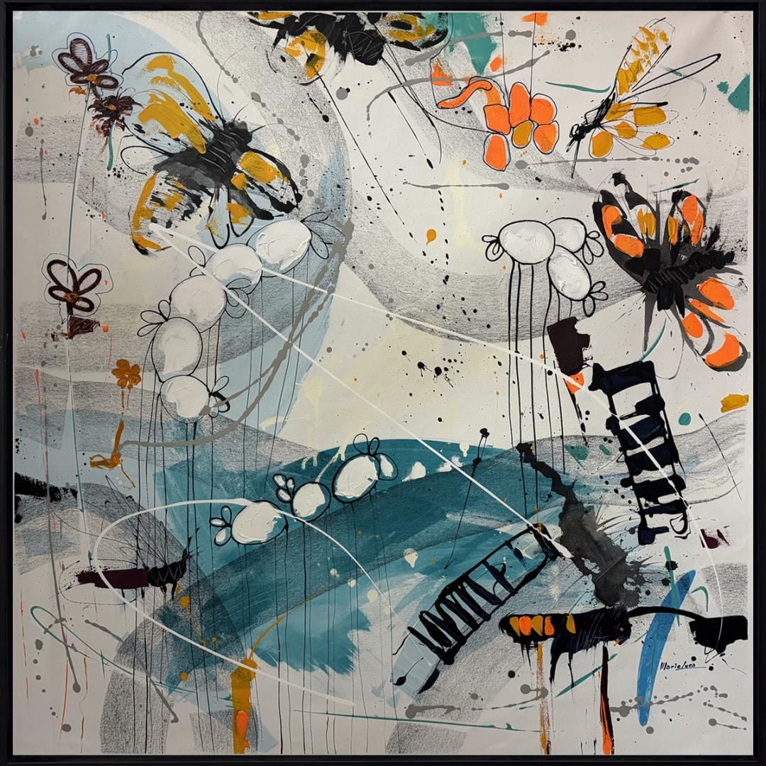 Stunningly beautiful original acrylic on canvas, hand signed by Artist. This artwork comes framed and ready to hang. Art size 55x55" framed size 57x57"