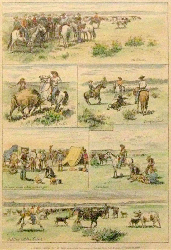 from photos by Huffman, Miles City, a page from Harpers Weekly 1886, 13-1/2” x 9-1/4”.