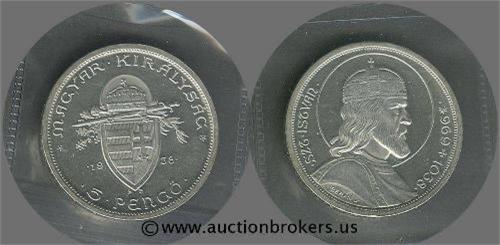Hugary St Stephen 5 Pengo 1938 Proof; Popular historic coin!