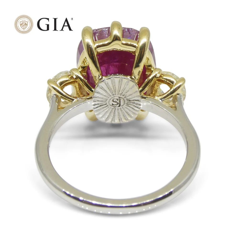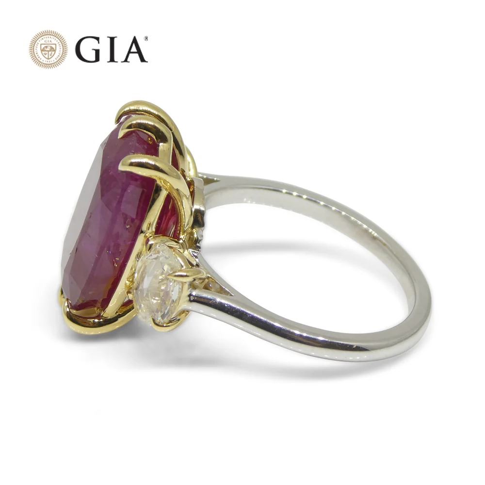Elevate your style with this Huge 10.94 Ct Rare Un-Heated Burgundy Red Ruby. This majestic Ruby Is Mounted in Both 18 k White And 18 k Yellow Gold. It is an oval cut measuring 15.09 x 10.99 x 6.18 mm. It is complimented with 2 genuine diamond accent stones. This red ruby ring is sure to turn heads! Ring size: 7.50. Total weight of item: 7.89g. Total diamond weight: 0.68 Ct. Treatment: None. Origin: Afghanistan. Please see the certification for additional information. The ring is currently a size 7.50, it can be resized for free after purchase.