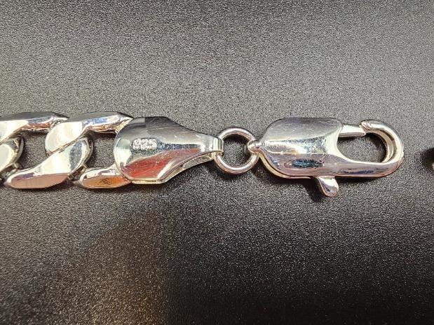Strong and durable heavy Tri-Layered .925 Sterling Silver Curb Link Necklace weighing 101.9 Grams. This High Quality Silver Necklace looks and wears just like solid silver and It is fade resistant. This fine necklace os 24 inches in length and a stealth 12 mm. wide.