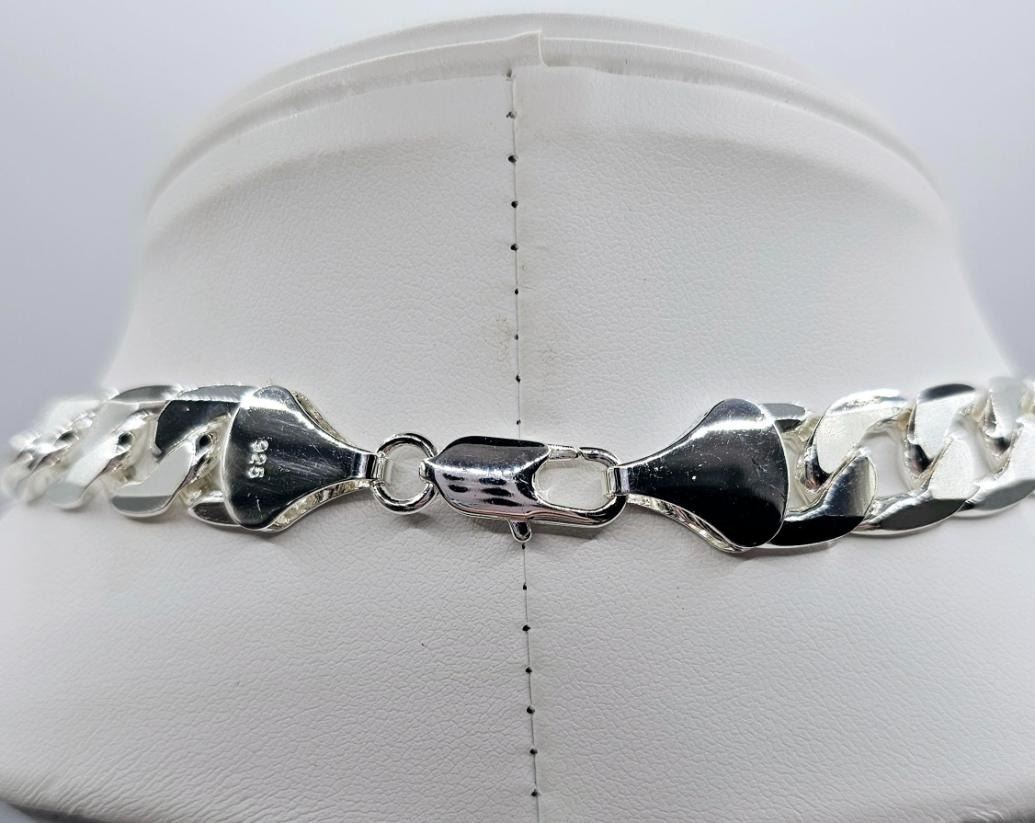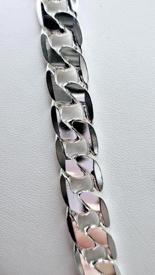 Strong and durable heavy Tri-Layered .925 Sterling Silver Curb Link Necklace weighing 101.9 Grams. This High Quality Silver Necklace looks and wears just like solid silver and It is fade resistant. This fine necklace os 24 inches in length and a stealth 12 mm. wide.