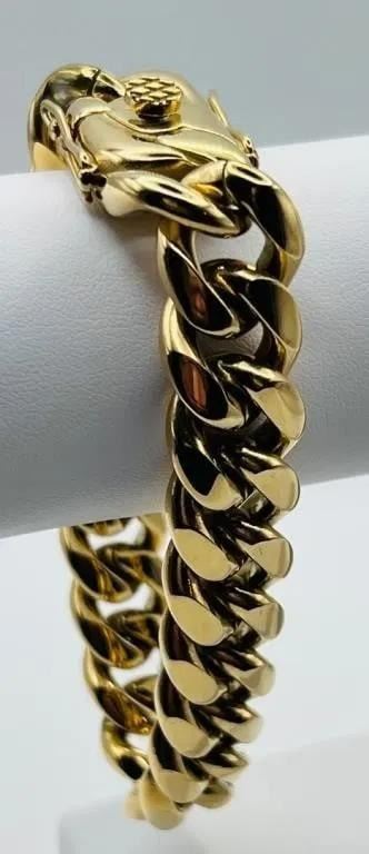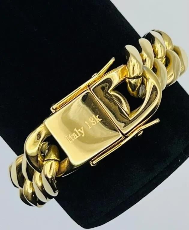 Huge 111.5 Gram 18 Kt Gold Plated Italian Curb Link Bracelet. A Stealth 16 mm. Wide and. 9." Long. This Tri-Layered Yellow Gold Plated Bracelet Has The Highly Desired Italy 18 K Stamp. This Fine Bracelet Looks Like Solid Gold Without The Solid Gold Price. This Bracelet Is Strong !!!