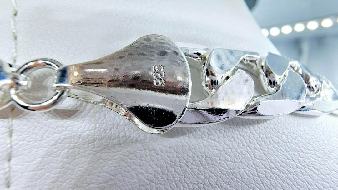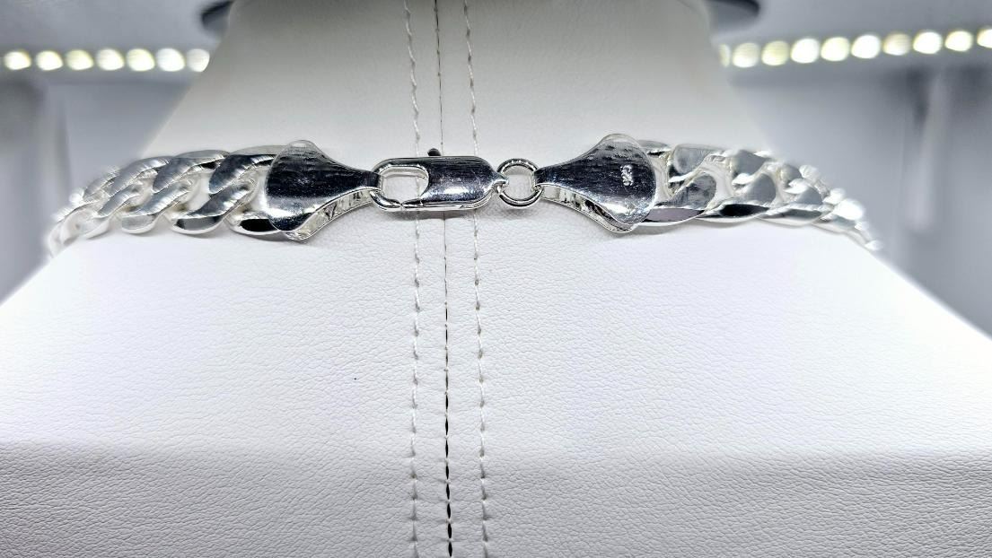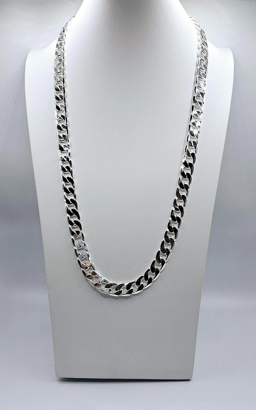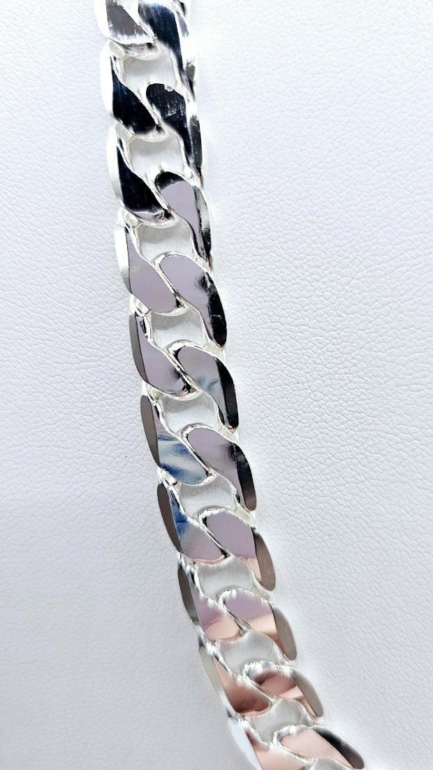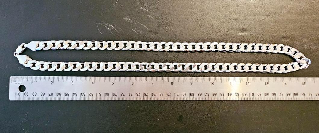 Strong and durable heavy Tri-Layered .925 Sterling Silver Curb Link Necklace weighing 130 Grams. This High Quality Silver Necklace looks and wears just like solid silver and It will not fade. This fine necklace is 30 inches in length and a stealth 10 mm. wide.