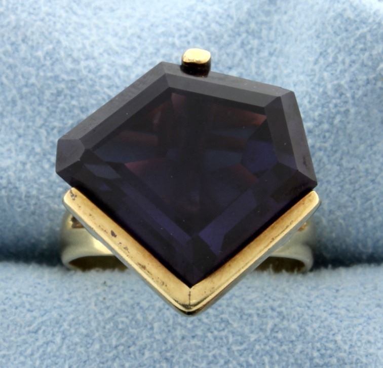 Distinct Pentagon Shaped Amethyst 16.5x17.5mm, over 20 carats. Size 8.5. 8.8g