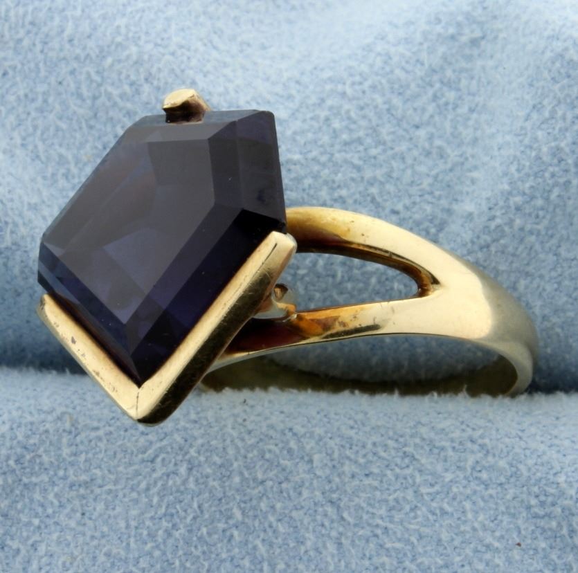 Distinct Pentagon Shaped Amethyst 16.5x17.5mm, over 20 carats. Size 8.5. 8.8g