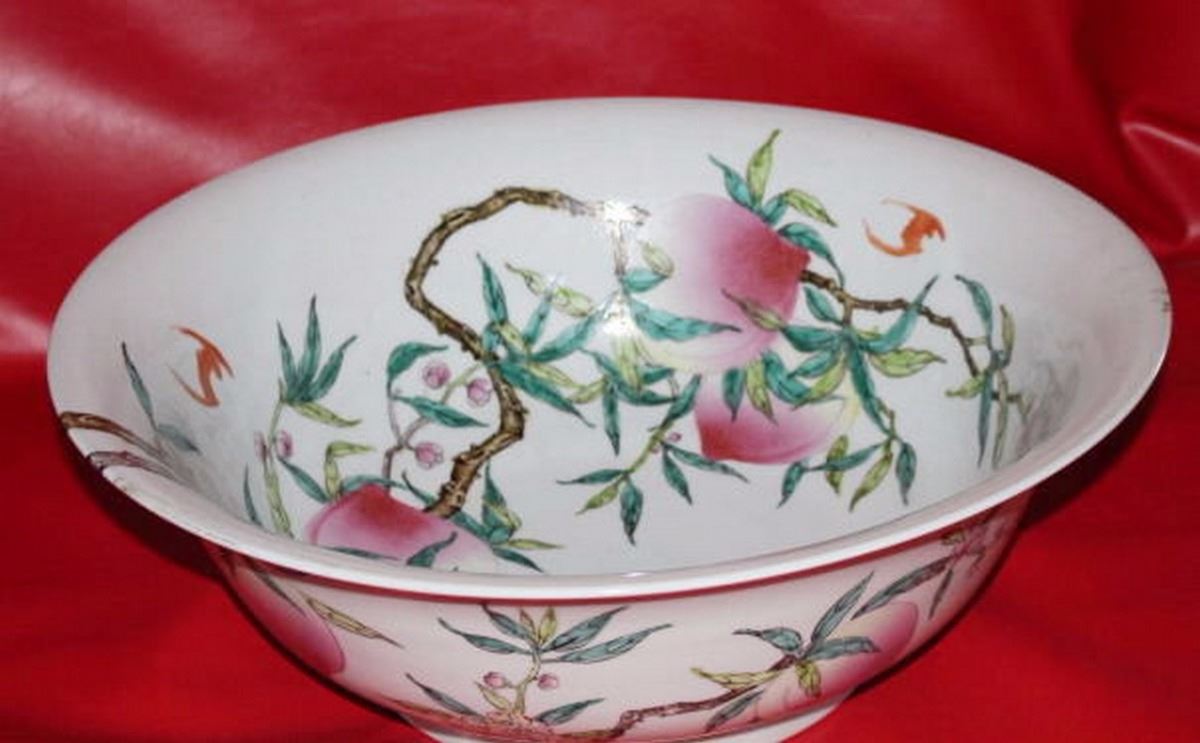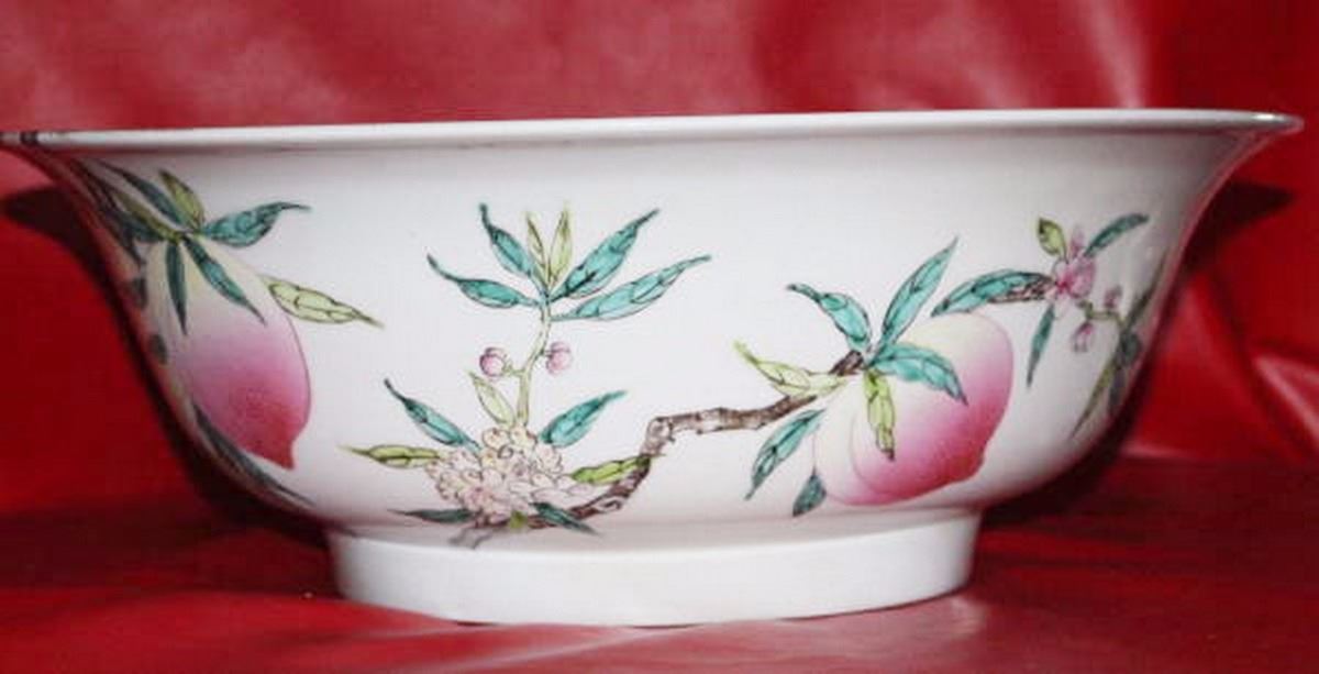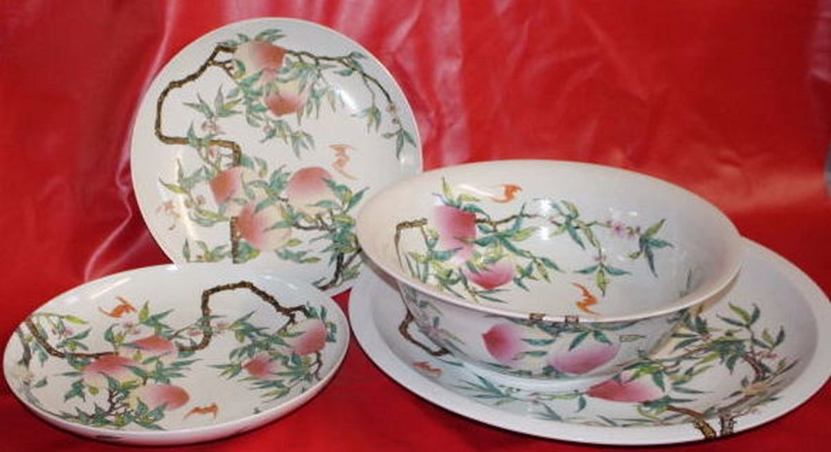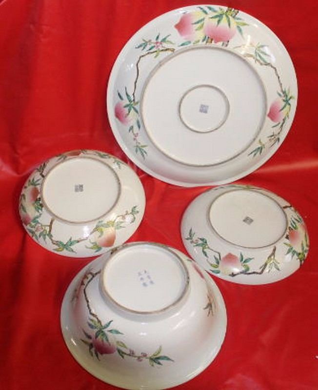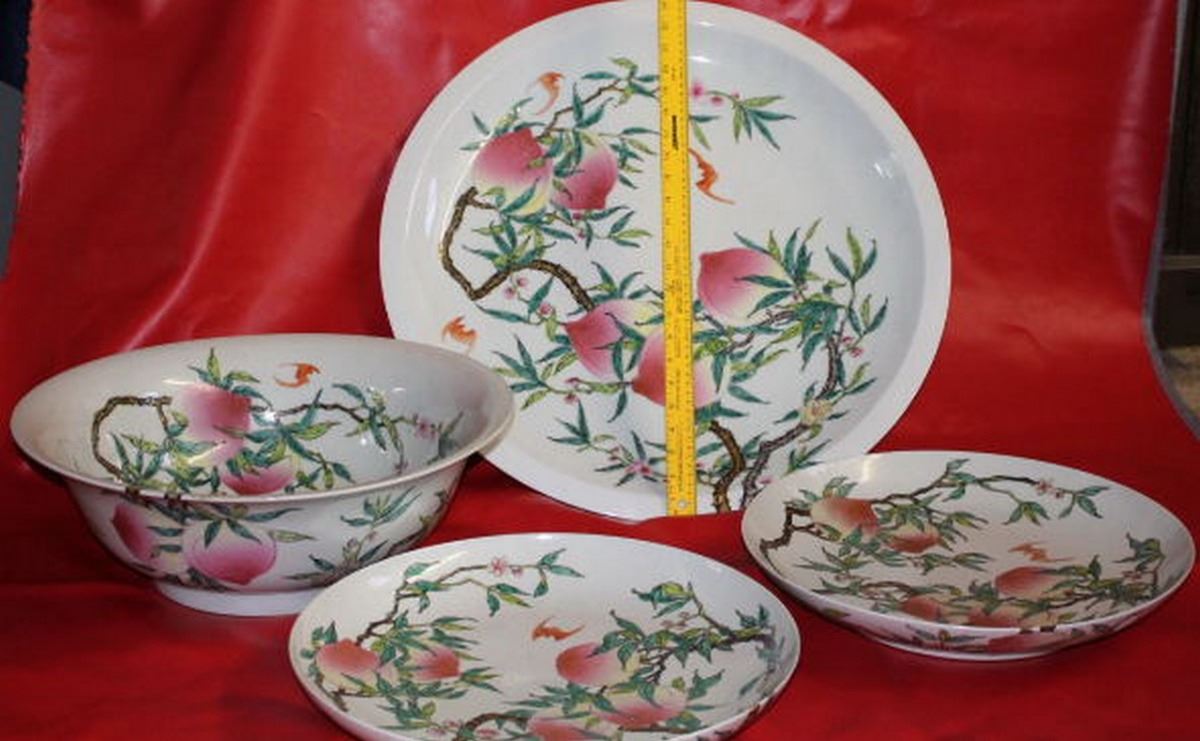 Antique-Vintage Chinese Extra Large Porcelain Platter, Plates & Bowl Hand Painted 26.00", 57.00-lbs combined