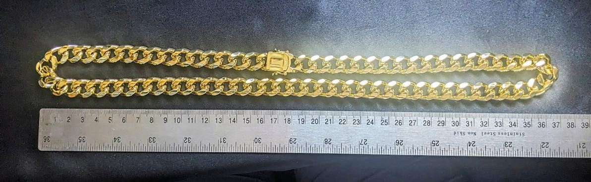Huge 285.5 Gram 14 Kt Gold Plated Cuban Curb Link Necklace. This High-Quality Top Notch Necklace Is Stealth Measuring A Healthy 14 mm Wide and Secured with a Double Safety Clasp. It measures 30 inches long.