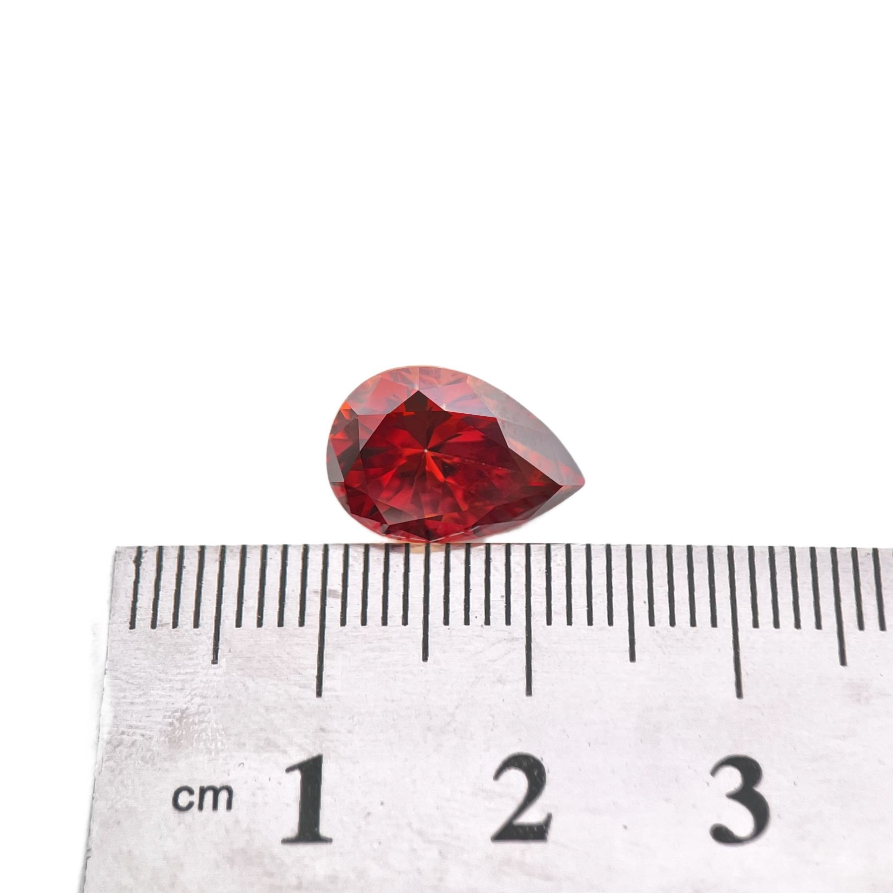Huge 5 Ct Sparkling VVs1 Hot Cherry Red Simulated Diamond Solitaire, This Large 5 Ct Simulated Diamond Is A Pear Cut Measuring Approx 13 x 9 mm. It is eye clean and Bursting Out with a Full Spectrum of Colors. ***With a refractive index of 2.65-2.69, this Lab Simulated Diamond exhibits more brilliance and fire than a diamond thanks to a dispersion that is 2.4 times higher than a natural diamond. It is also earth friendly and conflict free. With a 9.25 to 9.5 mohs measurement of hardness this fine gemstone solitaire will test positive for a diamond on almost any diamond tester***