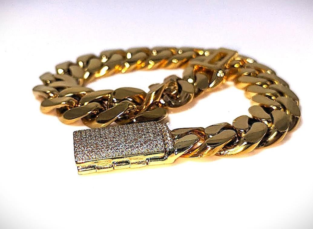 Huge 50 Gram Yellow 14 Kt Gold Plate Cuban Curb Link Bracelet