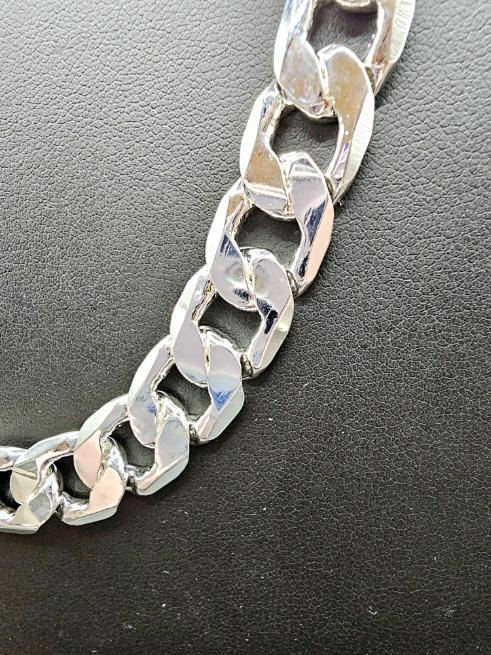 Strong and durable heavy Tri-Layered .925 Sterling Silver Curb Link Necklace weighing 85 Grams. This High Quality Silver Necklace looks and wears just like solid silver and It will not fade. This fine necklace is 24 inches in length and a stealth 12 mm. wide.
