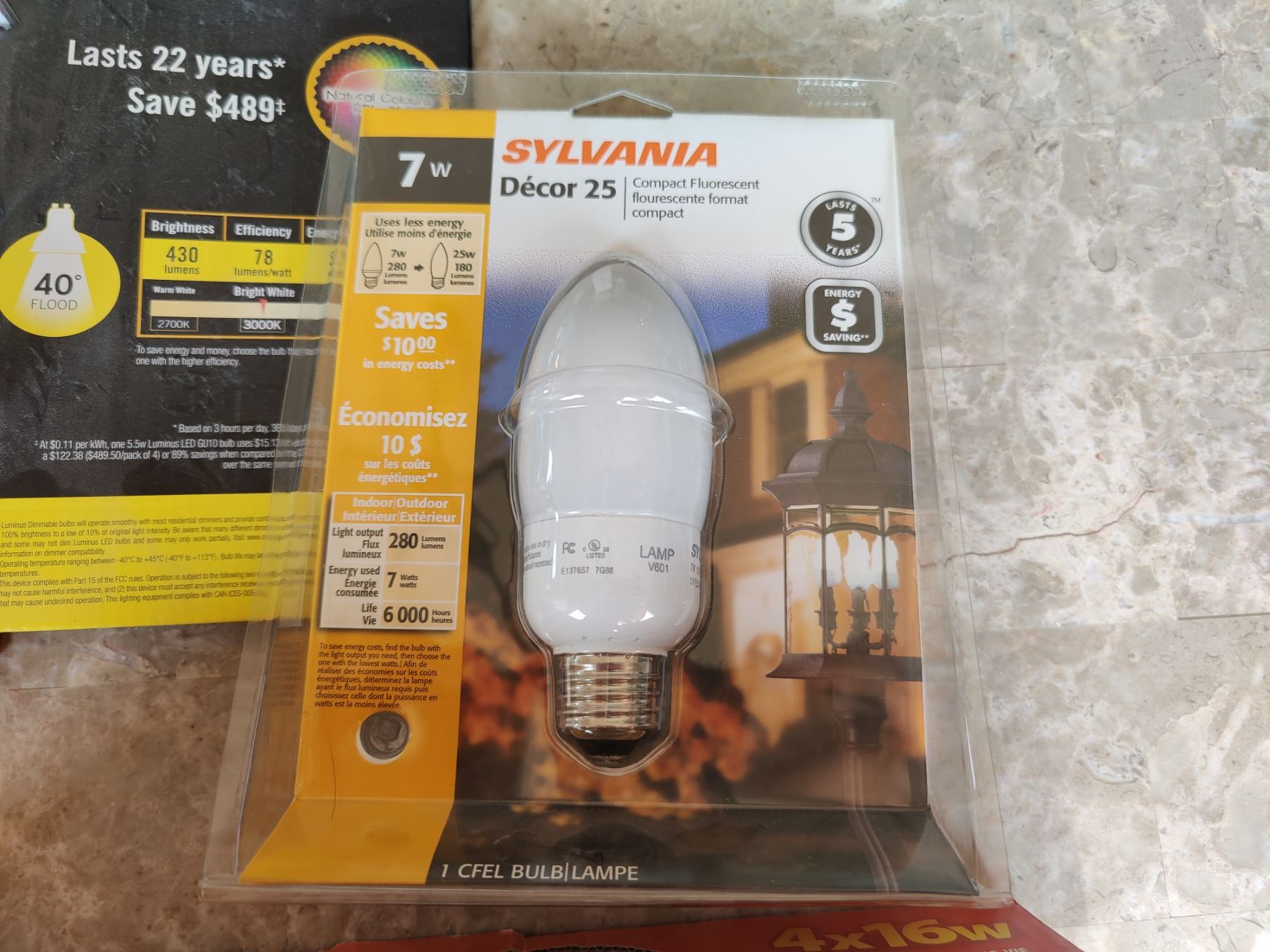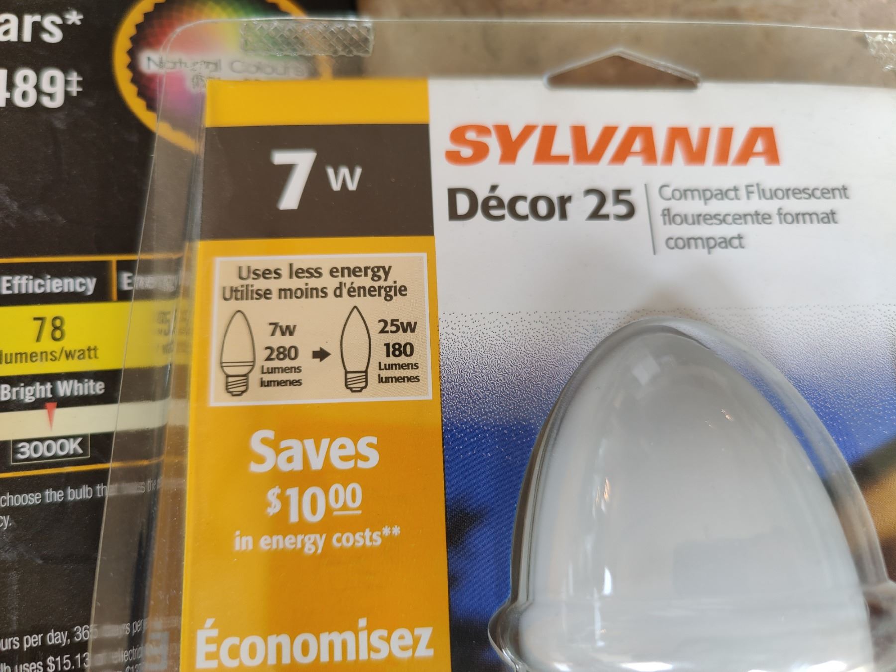1x Sylvania Decor 25 7W Compact Fluorescent Bulb