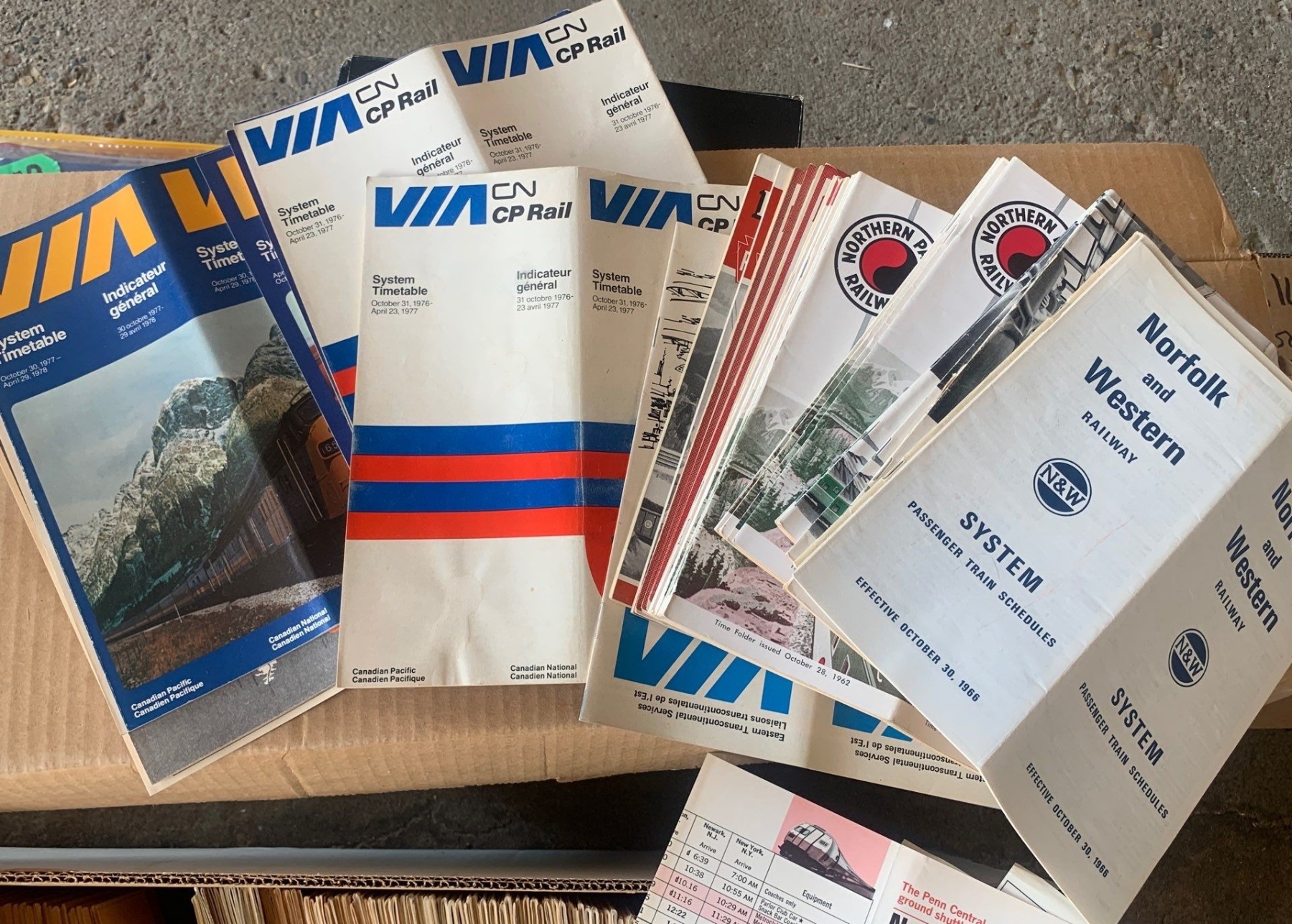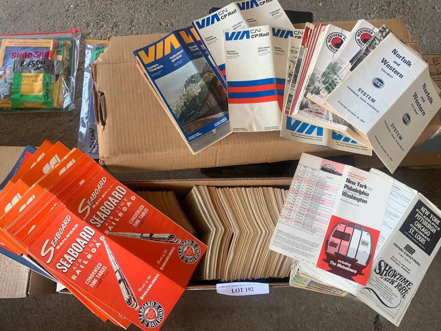 Huge Asst Railway Time Tables incl CN & CP Rail, N Pacific, Norfork & Western, Seaboard, NY Penn etc