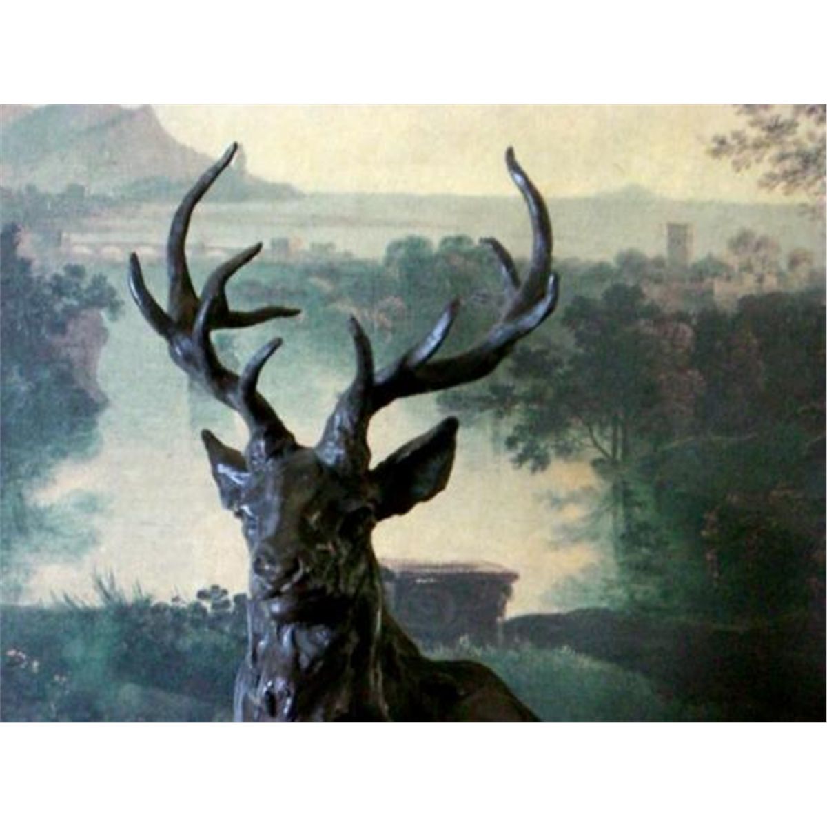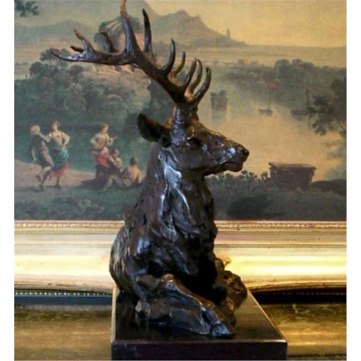 Resting Elk Bronze Sculpture, After Barye, 17"H x17"W x 8"D40 lbs. This bronze sculpture was produced using the "Lost Wax" casting method. The"Lost Wax" Cast method is the most precise metal casting technique in existence, ensuring exquisite detail of the original host model which is usually sculpted in clay or wax. This "Lost Wax" casting method is an extremely labor intensive and expensive process, but the end results produce a Heirloom Quality Masterpiece!Antoine-louis Barye (1796 - 1875) Originally trained as a goldsmith, Antoine-Louis Barye served in Napoleon's army before studying sculpture and painting. He entered the Ecole des Beaux-Arts in 1818 and adapted the romantic-style subject matter of violent and majestic animals. After his crocodile-like sculpture entitled Tiger Devouring a Gavail, won a medal at the Salon of 1831, Barye became a successful and independent sculptor and painter. His animal sculptures competed at the Salon alongside the more traditional and revered human figures. In 1845, Barye began a foundry that produced smaller and more affordable bronze statues. He was appointed the keeper of plaster casts at the Louvre and professor of zoological drawing at the Musee National d'Histoire Naturelle, both in Paris. Elected to the Academie in 1868, Barye inspired a later generation of animal sculptors who called themselves the animaliers.