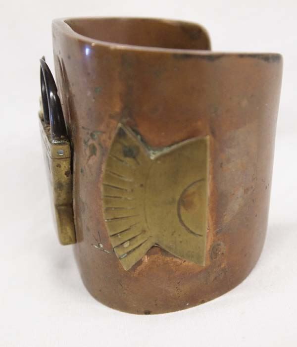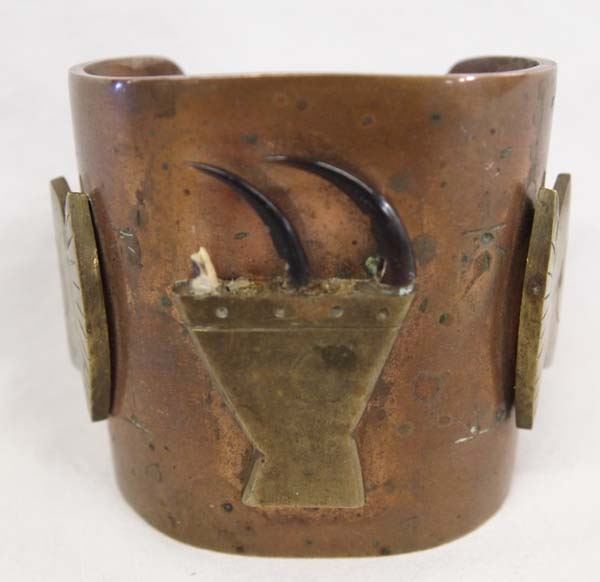 Huge Copper and Brass Bracelet by Chief, hallmarked by artist, has 3 small talons one of which has broke off however is included, very heavy weighing in at 351.9g