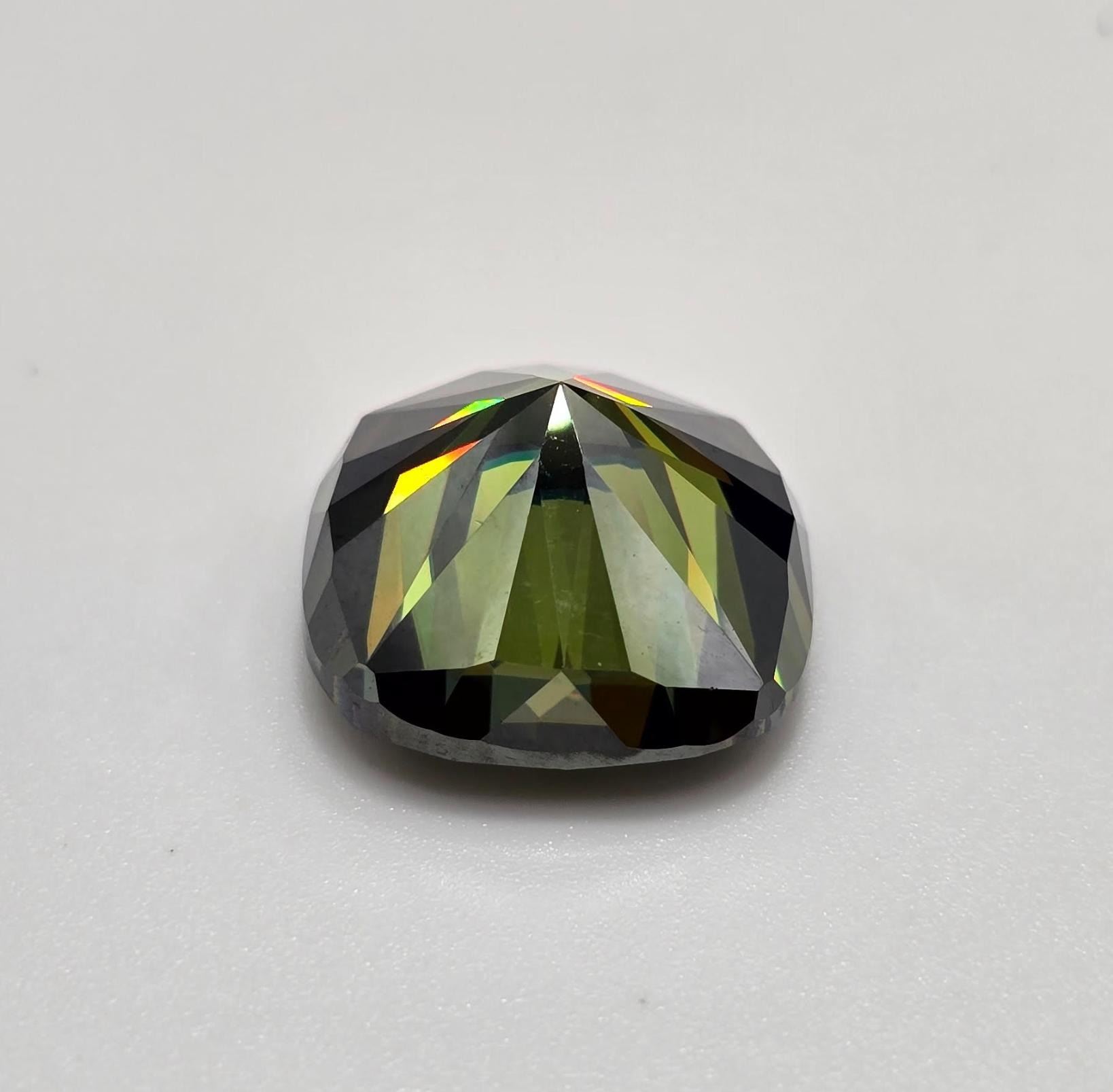 This Exceptional 16.5 Ct VVs1 Lab Simulated Diamond Is a Fancy Cushion Cut Measuring 15 x 14.7 mm. It is eye clean and Bursting Out with a Full Spectrum of Colors. ***With a refractive index of 2.65-2.69, this Lab Simulated Diamond exhibits more brilliance and fire than a diamond thanks to a dispersion that is 2.4 times higher than a natural diamond. It is also earth-friendly and conflict-free. With a 9.25 to 9.5 Mohs measurement of hardness this fine gemstone solitaire will test positive for a diamond on almost any diamond tester.