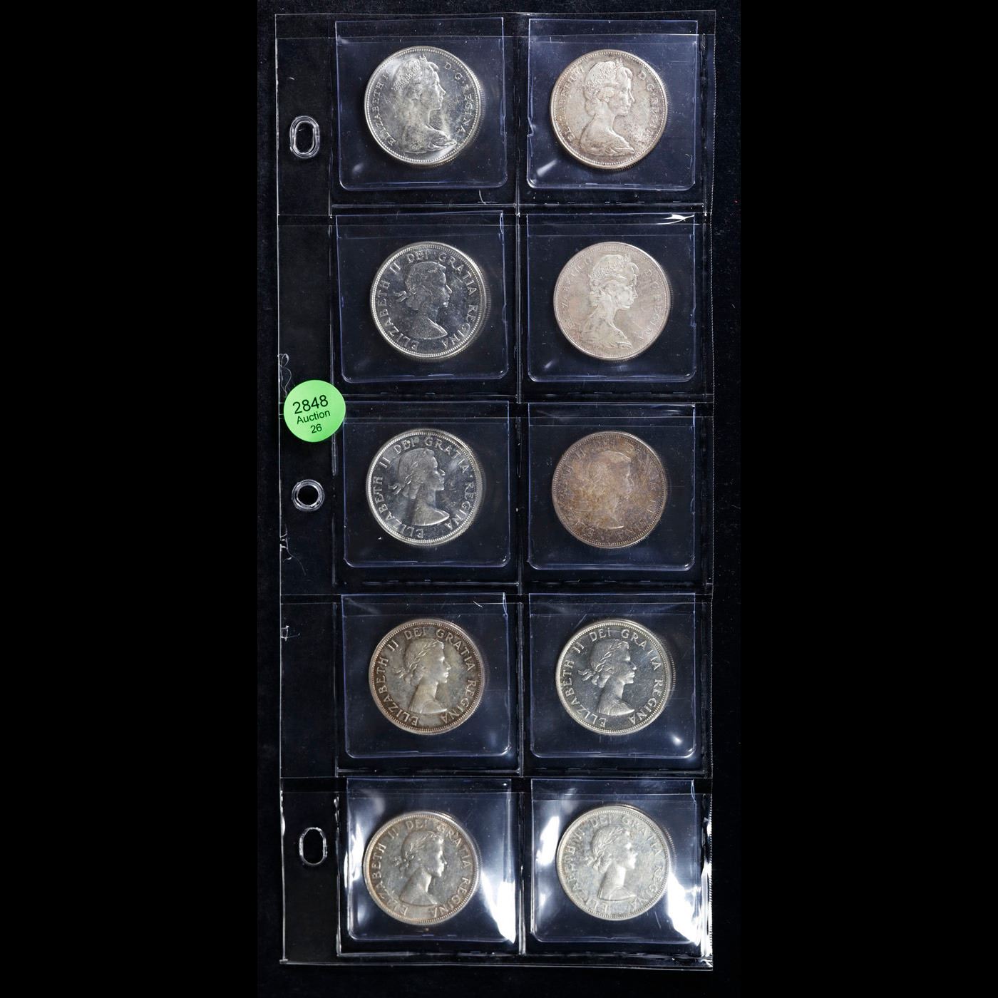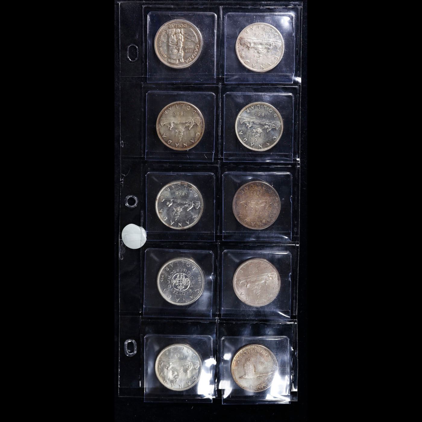 Huge Liifetime Collection - Too Many Coins To Auction Individually - This Lot is For One Half Page of 10 Silver Canadian Dollars.