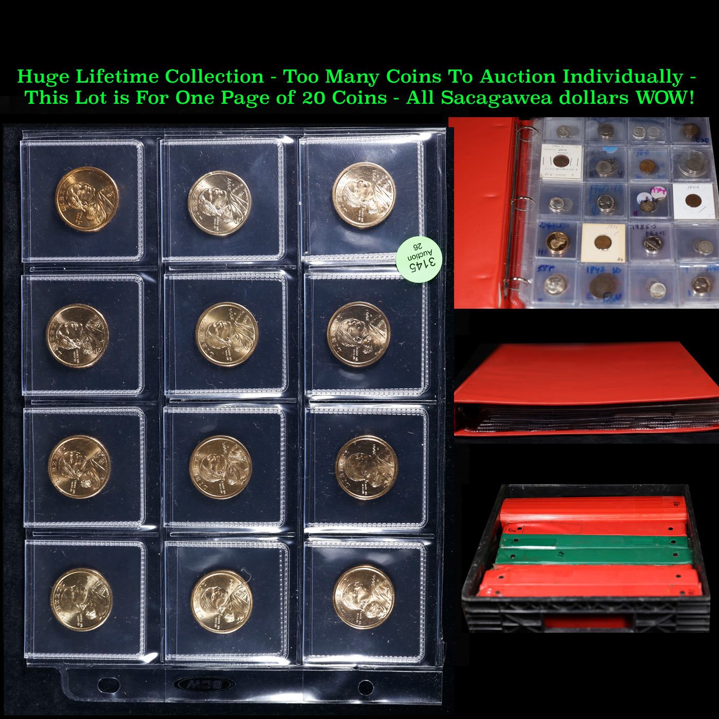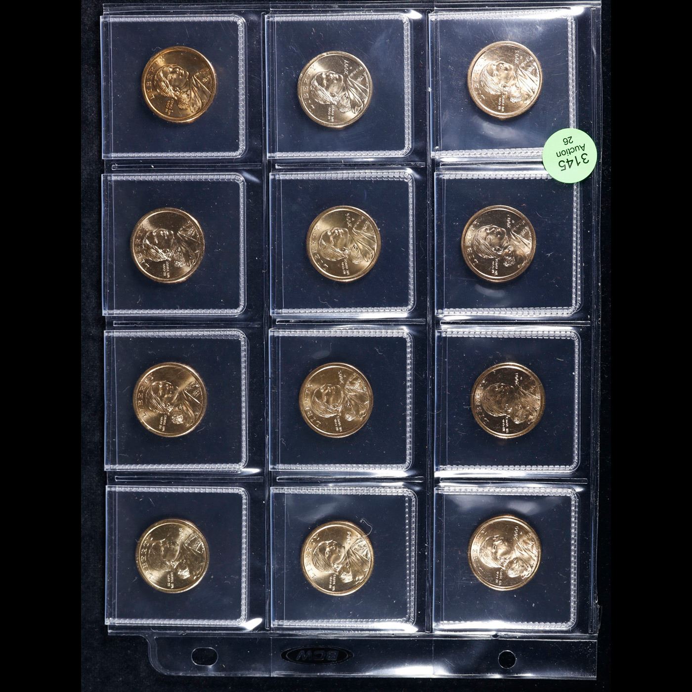 Huge Liifetime Collection - Too Many Coins To Auction Individually - This Lot is For One Half Page of 12 Sacagawea Dollars.
