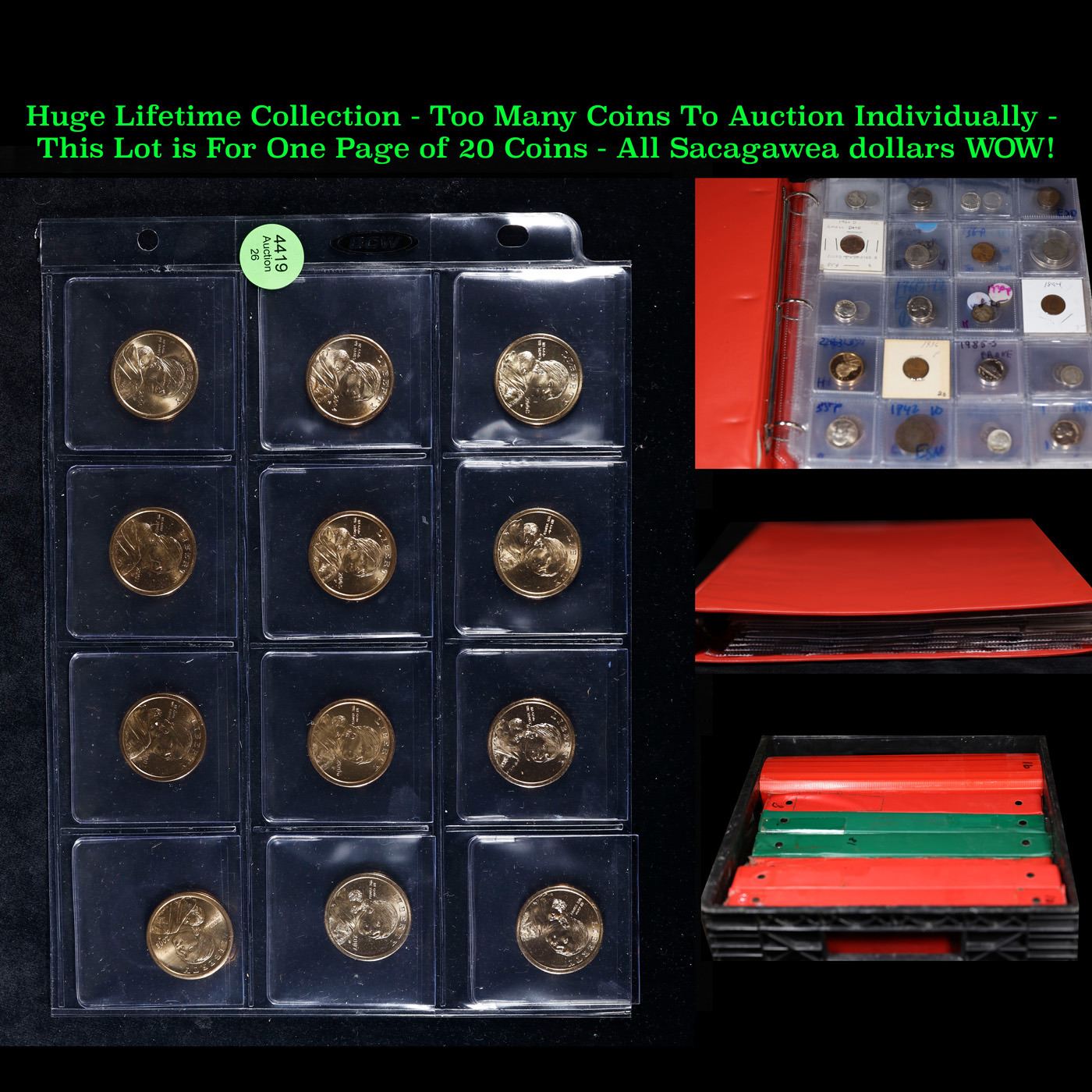 Huge Liifetime Collection - Too Many Coins To Auction Individually - This Lot is For One Half Page of 12 Sacagawea Dollars.