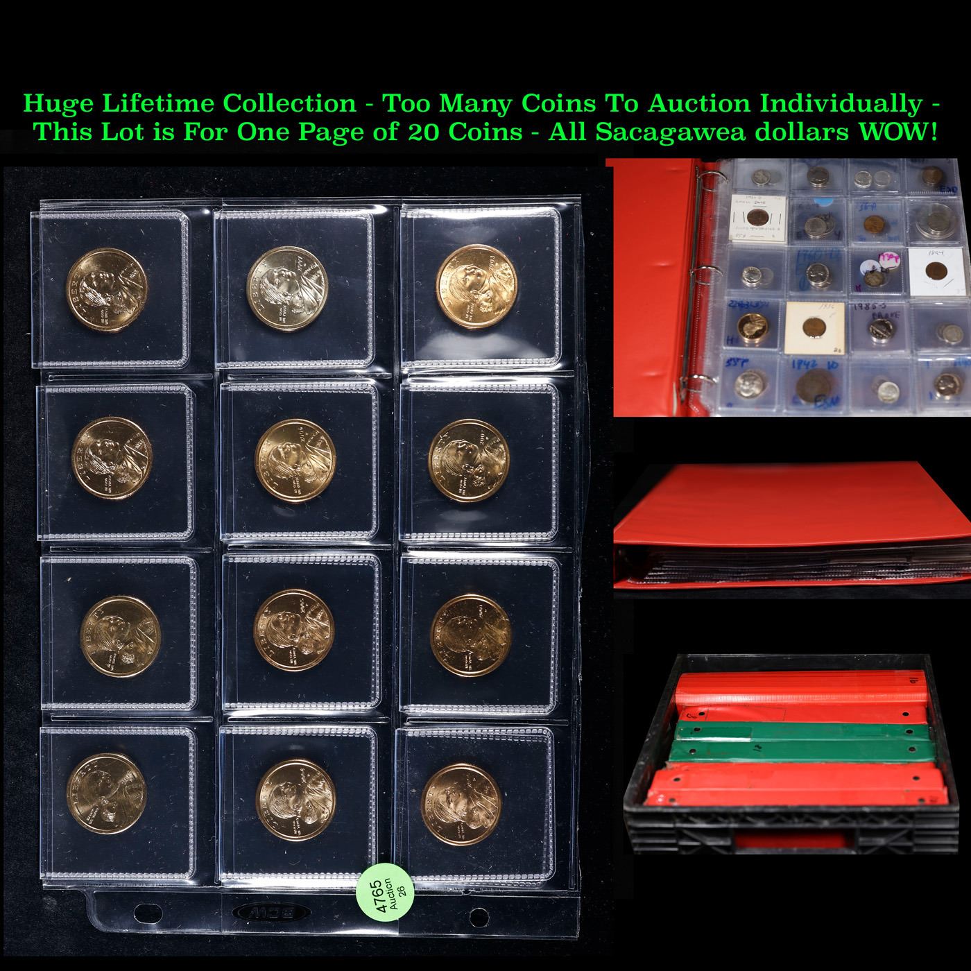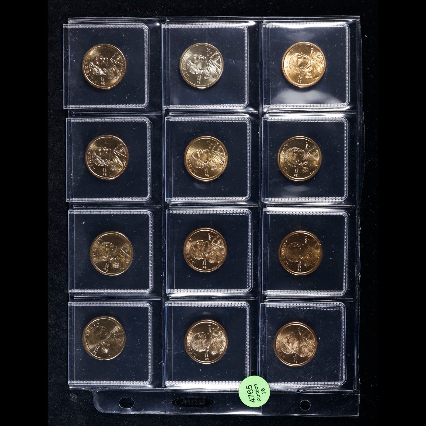 Huge Liifetime Collection - Too Many Coins To Auction Individually - This Lot is For One Half Page of 12 Sacagawea Dollars.
