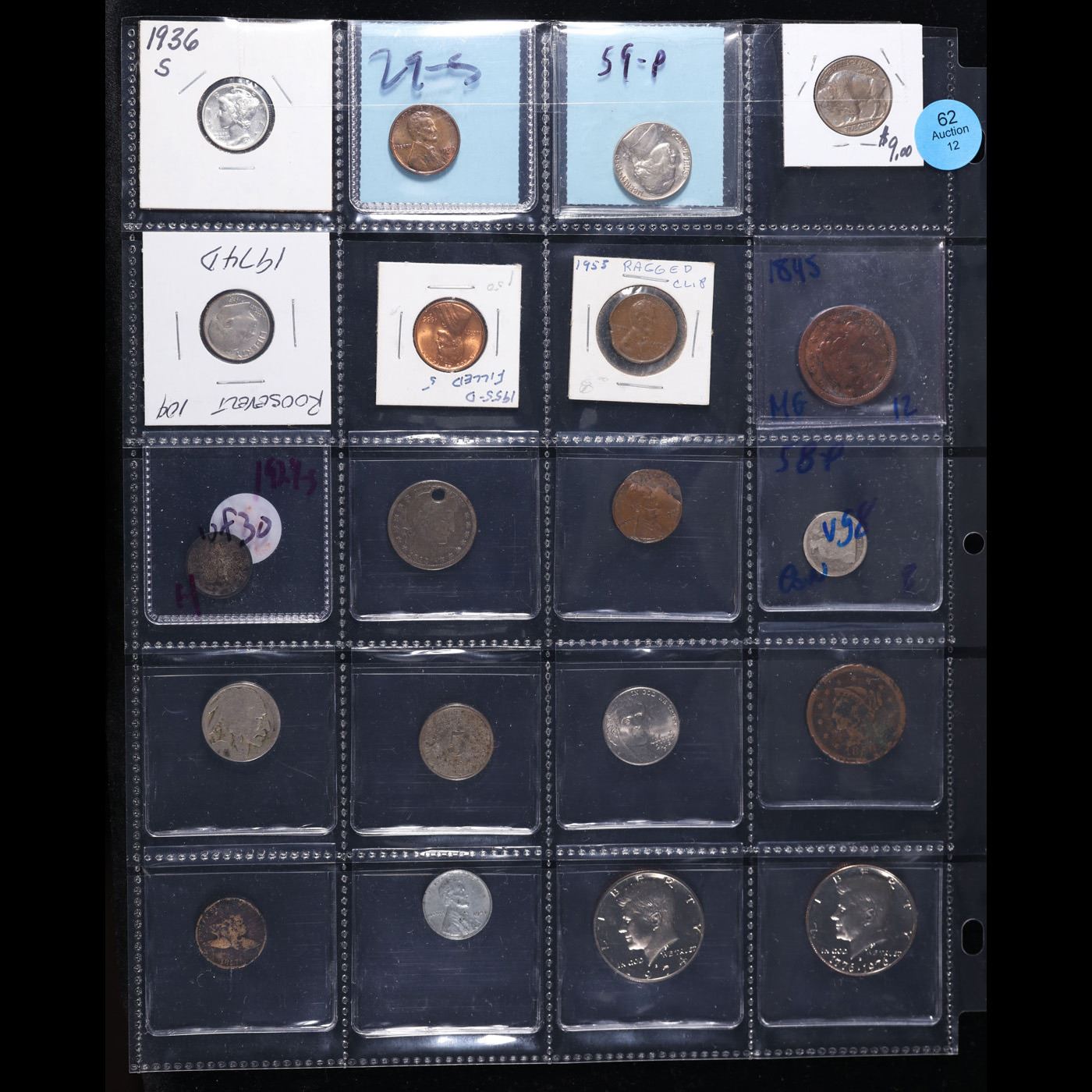 Huge Liifetime Collection - Too Many Coins To Auction Individually - This Lot is For One Page of 20 Coins - All US, No Foreign WOW!. We have received a huge collection of over 10 thousand US coins in flips, 2x2 holders, and 20 coin pages. We are forced, due to limited lots, to sell this collection in pages of 20 coins. All of the pages include Silver Coins. Most contain Indian Cents, Proof Coins, Barber Coinage, Bust Coinage, Lincoln Cents, Flying Eagles, Jefferson Nickels, Roosevelt Dimes, Buffalo Nickels, Eisenhower Dollars, Kennedy Halves, Large Cents including some Draped Bust Large Cents, Mercury Dimes, and Liberty V Nickels. These pages could not be reviewed by anyone in our office due to time constraints. We estimate the value of each page to meet or exceed $200 in value! Good luck and happy hunting.