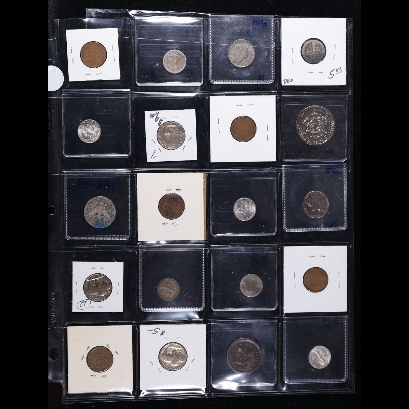 Huge Liifetime Collection - Too Many Coins To Auction Individually - This Lot is For One Page of 20 Coins - All US, No Foreign WOW!. We have received a huge collection of over 10 thousand US coins in flips, 2x2 holders, and 20 coin pages. We are forced, due to limited lots, to sell this collection in pages of 20 coins. All of the pages include Silver Coins. Most contain Indian Cents, Proof Coins, Barber Coinage, Bust Coinage, Lincoln Cents, Flying Eagles, Jefferson Nickels, Roosevelt Dimes, Buffalo Nickels, Eisenhower Dollars, Kennedy Halves, Large Cents including some Draped Bust Large Cents, Mercury Dimes, and Liberty V Nickels. These pages could not be reviewed by anyone in our office due to time constraints. We estimate the value of each page to meet or exceed $200 in value! Good luck and happy hunting.