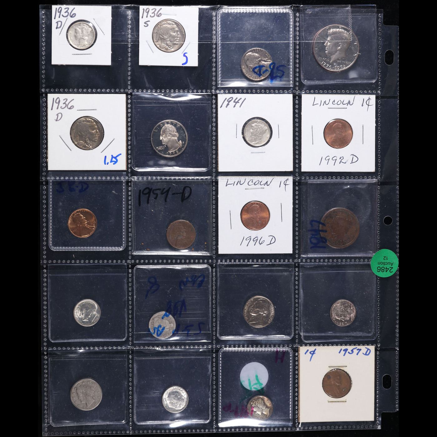 Huge Liifetime Collection - Too Many Coins To Auction Individually - This Lot is For One Page of 20 Coins - All US, No Foreign WOW!. We have received a huge collection of over 10 thousand US coins in flips, 2x2 holders, and 20 coin pages. We are forced, due to limited lots, to sell this collection in pages of 20 coins. All of the pages include Silver Coins. Most contain Indian Cents, Proof Coins, Barber Coinage, Bust Coinage, Lincoln Cents, Flying Eagles, Jefferson Nickels, Roosevelt Dimes, Buffalo Nickels, Eisenhower Dollars, Kennedy Halves, Large Cents including some Draped Bust Large Cents, Mercury Dimes, and Liberty V Nickels. These pages could not be reviewed by anyone in our office due to time constraints. We estimate the value of each page to meet or exceed $200 in value! Good luck and happy hunting.