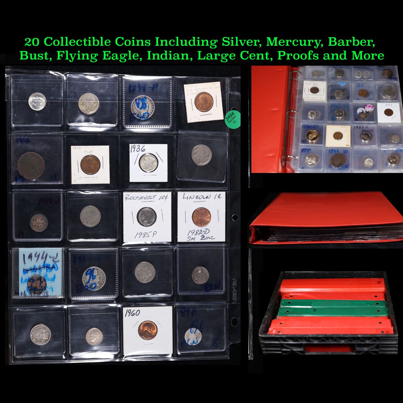 Huge Liifetime Collection - Too Many Coins To Auction Individually - This Lot is For One Page of 20 Coins - All US, No Foreign WOW!. We have received a huge collection of over 10 thousand US coins in flips, 2x2 holders, and 20 coin pages. We are forced, due to limited lots, to sell this collection in pages of 20 coins. All of the pages include Silver Coins. Most contain Indian Cents, Proof Coins, Barber Coinage, Bust Coinage, Lincoln Cents, Flying Eagles, Jefferson Nickels, Roosevelt Dimes, Buffalo Nickels, Eisenhower Dollars, Kennedy Halves, Large Cents including some Draped Bust Large Cents, Mercury Dimes, and Liberty V Nickels. These pages could not be reviewed by anyone in our office due to time constraints. We estimate the value of each page to meet or exceed $200 in value! Good luck and happy hunting.