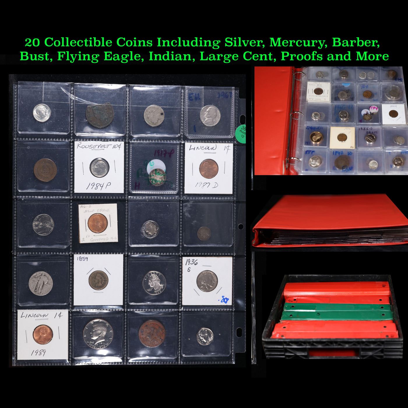 Huge Liifetime Collection - Too Many Coins To Auction Individually - This Lot is For One Page of 20 Coins - All US, No Foreign WOW!. We have received a huge collection of over 10 thousand US coins in flips, 2x2 holders, and 20 coin pages. We are forced, due to limited lots, to sell this collection in pages of 20 coins. All of the pages include Silver Coins. Most contain Indian Cents, Proof Coins, Barber Coinage, Bust Coinage, Lincoln Cents, Flying Eagles, Jefferson Nickels, Roosevelt Dimes, Buffalo Nickels, Eisenhower Dollars, Kennedy Halves, Large Cents including some Draped Bust Large Cents, Mercury Dimes, and Liberty V Nickels. These pages could not be reviewed by anyone in our office due to time constraints. We estimate the value of each page to meet or exceed $200 in value! Good luck and happy hunting.