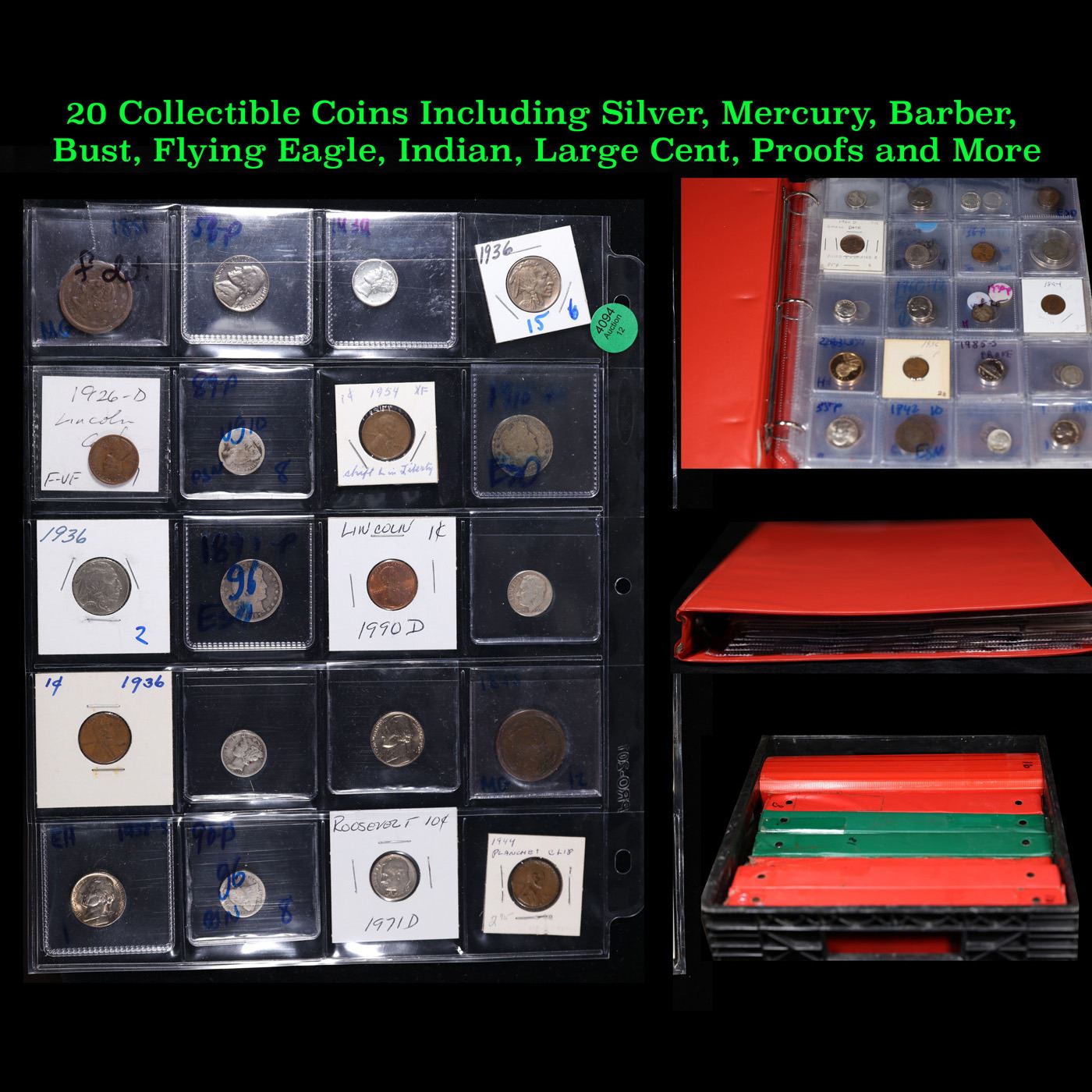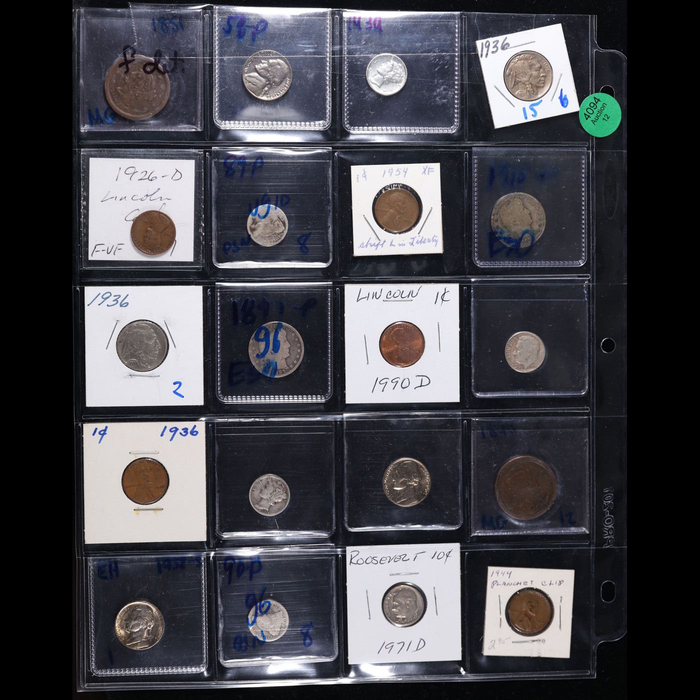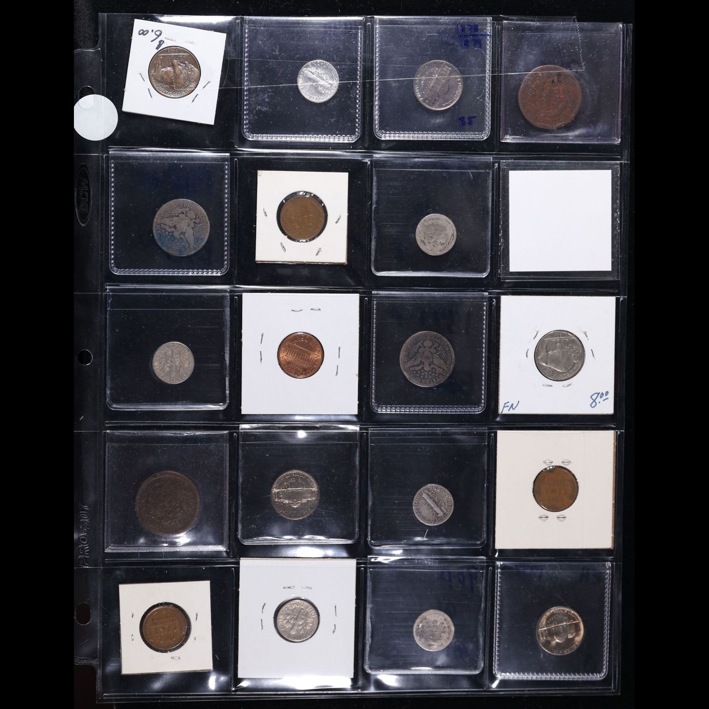 Huge Liifetime Collection - Too Many Coins To Auction Individually - This Lot is For One Page of 20 Coins - All US, No Foreign WOW!. We have received a huge collection of over 10 thousand US coins in flips, 2x2 holders, and 20 coin pages. We are forced, due to limited lots, to sell this collection in pages of 20 coins. All of the pages include Silver Coins. Most contain Indian Cents, Proof Coins, Barber Coinage, Bust Coinage, Lincoln Cents, Flying Eagles, Jefferson Nickels, Roosevelt Dimes, Buffalo Nickels, Eisenhower Dollars, Kennedy Halves, Large Cents including some Draped Bust Large Cents, Mercury Dimes, and Liberty V Nickels. These pages could not be reviewed by anyone in our office due to time constraints. We estimate the value of each page to meet or exceed $200 in value! Good luck and happy hunting.