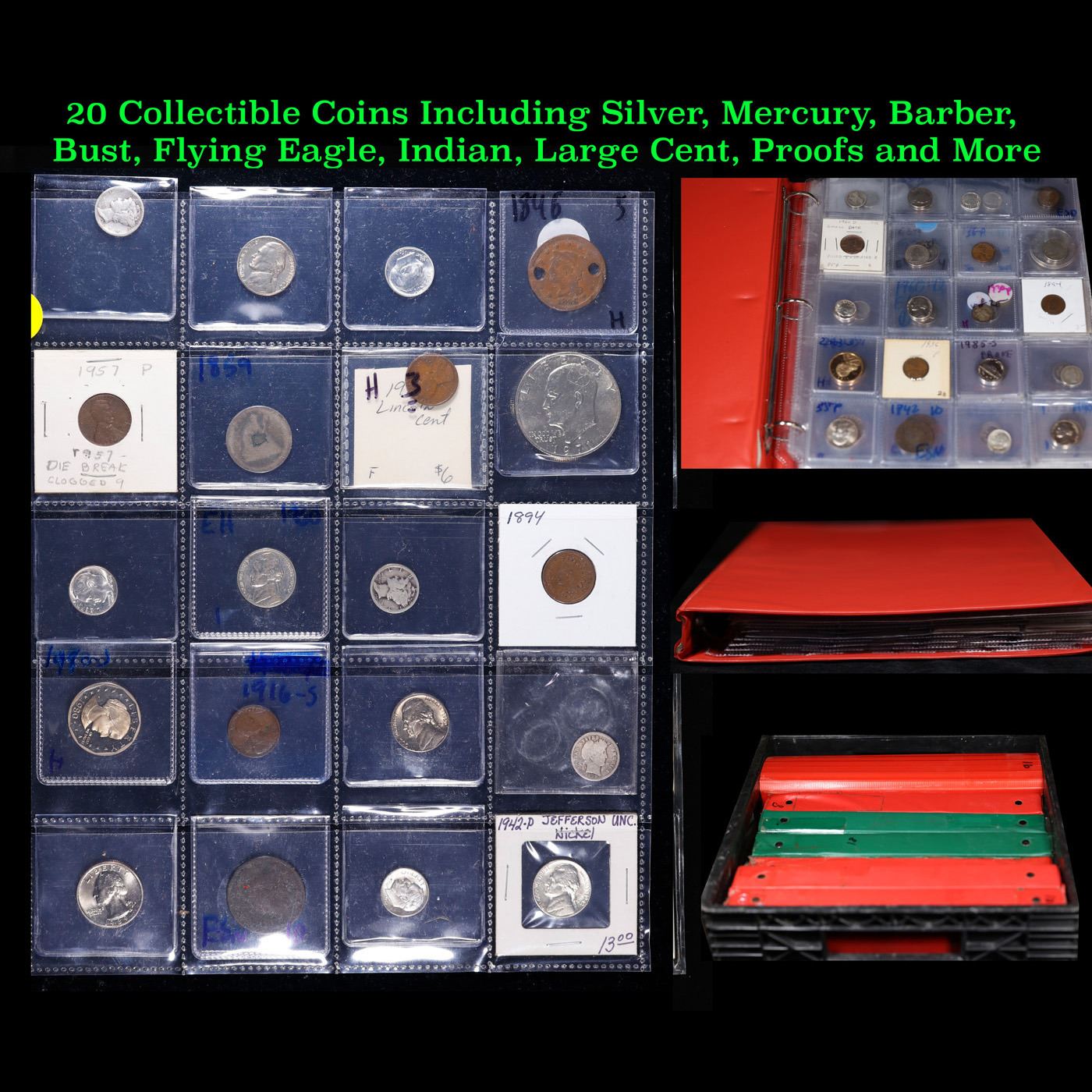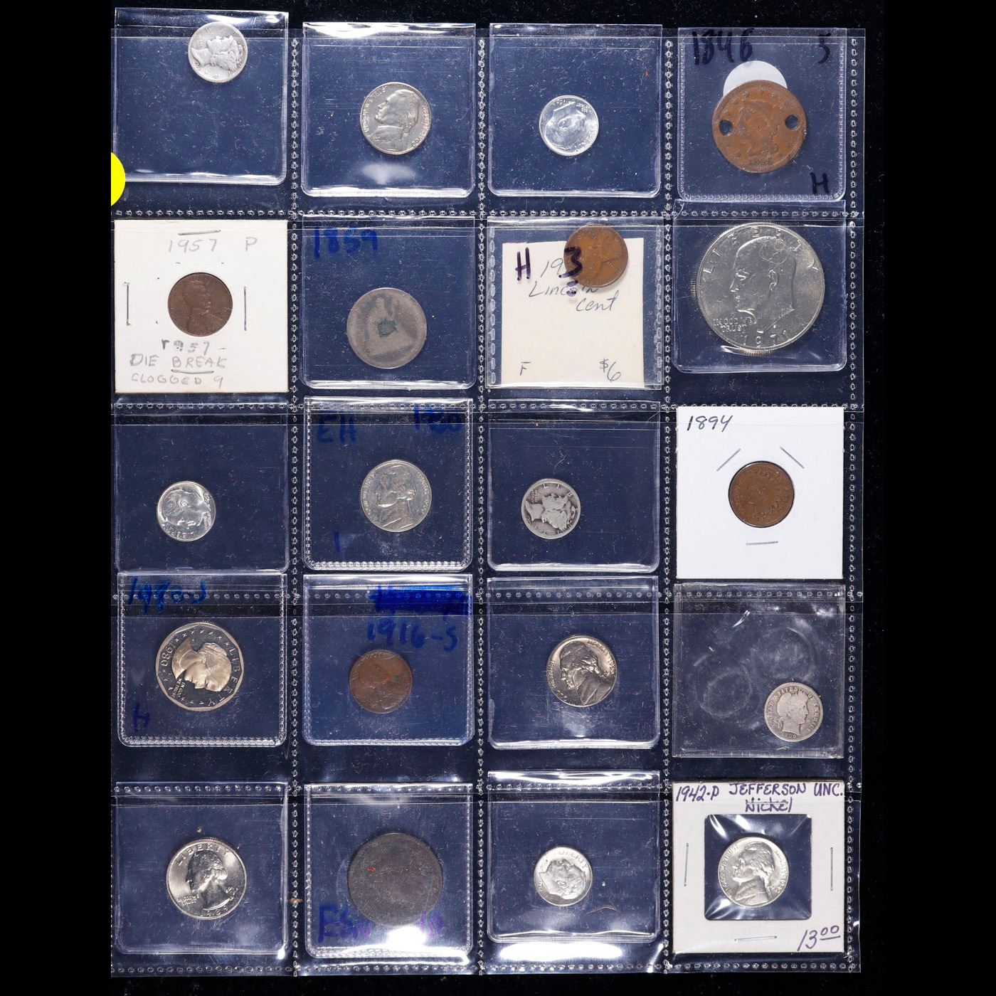 Huge Liifetime Collection - Too Many Coins To Auction Individually - This Lot is For One Page of 20 Coins - All US, No Foreign WOW!. We have received a huge collection of over 10 thousand US coins in flips, 2x2 holders, and 20 coin pages. We are forced, due to limited lots, to sell this collection in pages of 20 coins. All of the pages include Silver Coins. Most contain Indian Cents, Proof Coins, Barber Coinage, Bust Coinage, Lincoln Cents, Flying Eagles, Jefferson Nickels, Roosevelt Dimes, Buffalo Nickels, Eisenhower Dollars, Kennedy Halves, Large Cents including some Draped Bust Large Cents, Mercury Dimes, and Liberty V Nickels. These pages could not be reviewed by anyone in our office due to time constraints. We estimate the value of each page to meet or exceed $200 in value! Good luck and happy hunting.
