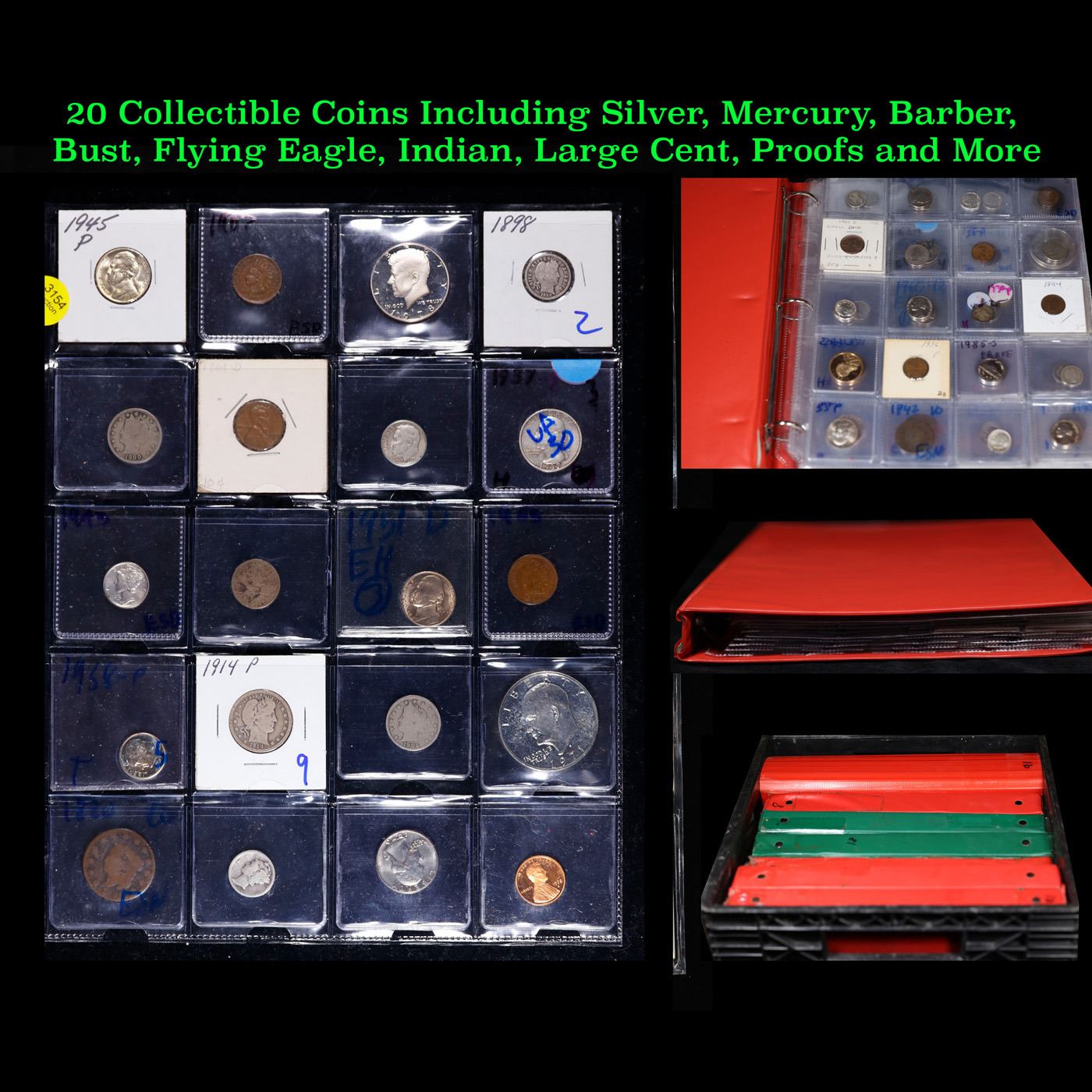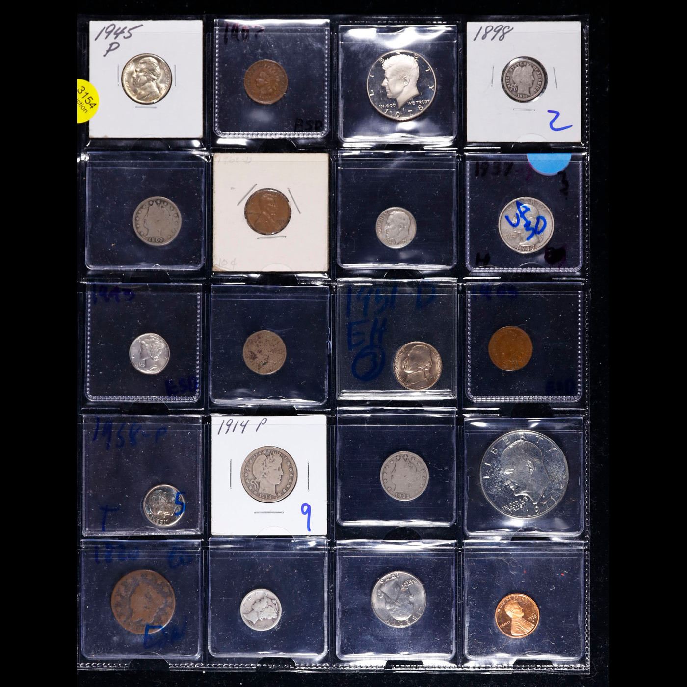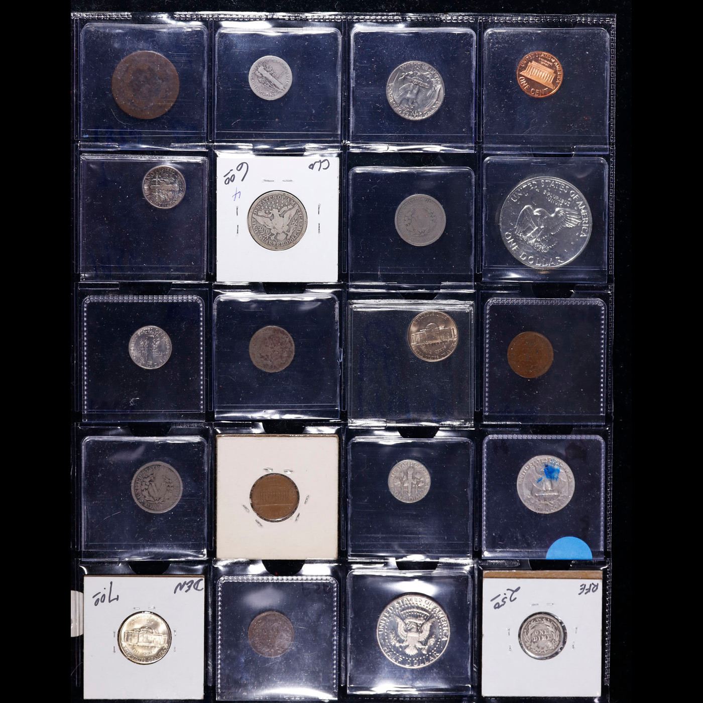 Huge Liifetime Collection - Too Many Coins To Auction Individually - This Lot is For One Page of 20 Coins - All US, No Foreign WOW!. We have received a huge collection of over 10 thousand US coins in flips, 2x2 holders, and 20 coin pages. We are forced, due to limited lots, to sell this collection in pages of 20 coins. All of the pages include Silver Coins. Most contain Indian Cents, Proof Coins, Barber Coinage, Bust Coinage, Lincoln Cents, Flying Eagles, Jefferson Nickels, Roosevelt Dimes, Buffalo Nickels, Eisenhower Dollars, Kennedy Halves, Large Cents including some Draped Bust Large Cents, Mercury Dimes, and Liberty V Nickels. These pages could not be reviewed by anyone in our office due to time constraints. We estimate the value of each page to meet or exceed $200 in value! Good luck and happy hunting.