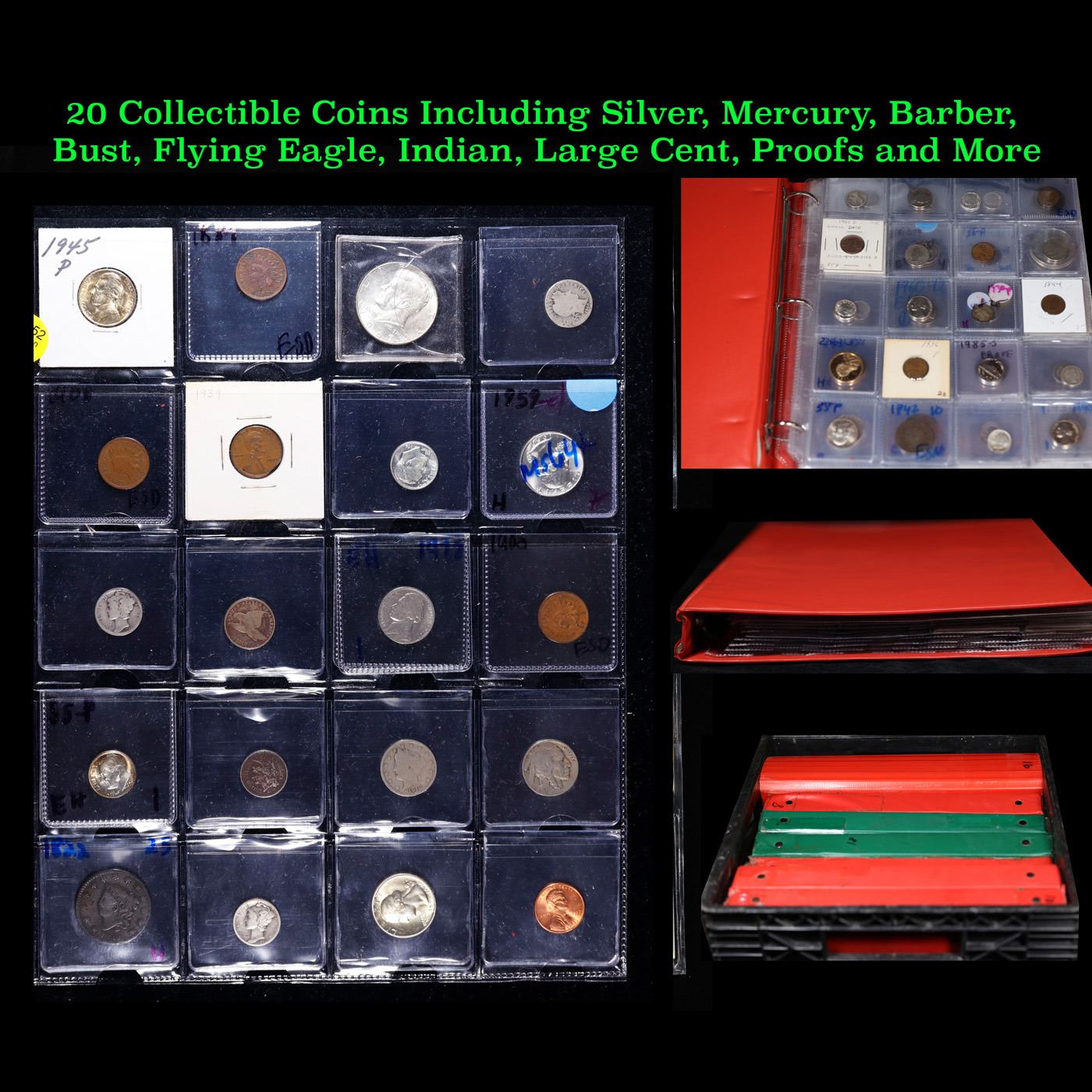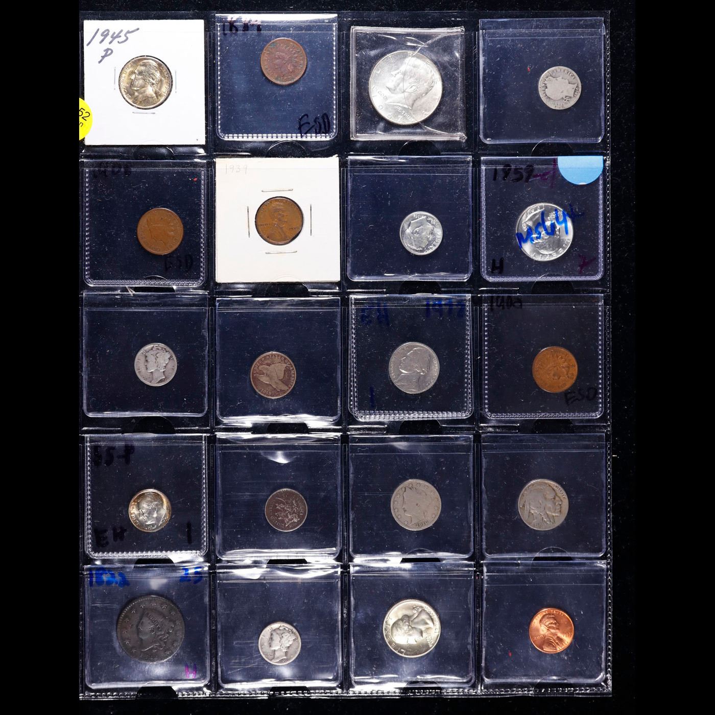 Huge Liifetime Collection - Too Many Coins To Auction Individually - This Lot is For One Page of 20 Coins - All US, No Foreign WOW!. We have received a huge collection of over 10 thousand US coins in flips, 2x2 holders, and 20 coin pages. We are forced, due to limited lots, to sell this collection in pages of 20 coins. All of the pages include Silver Coins. Most contain Indian Cents, Proof Coins, Barber Coinage, Bust Coinage, Lincoln Cents, Flying Eagles, Jefferson Nickels, Roosevelt Dimes, Buffalo Nickels, Eisenhower Dollars, Kennedy Halves, Large Cents including some Draped Bust Large Cents, Mercury Dimes, and Liberty V Nickels. These pages could not be reviewed by anyone in our office due to time constraints. We estimate the value of each page to meet or exceed $200 in value! Good luck and happy hunting.