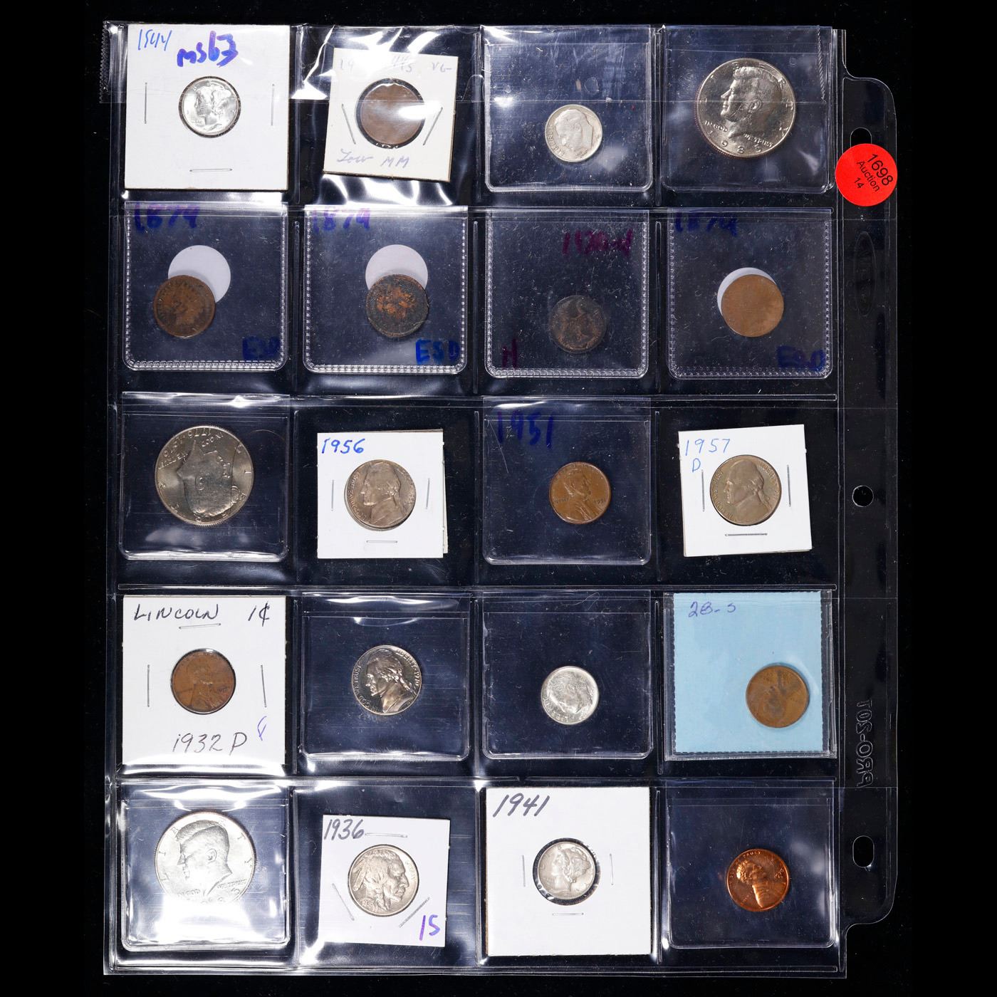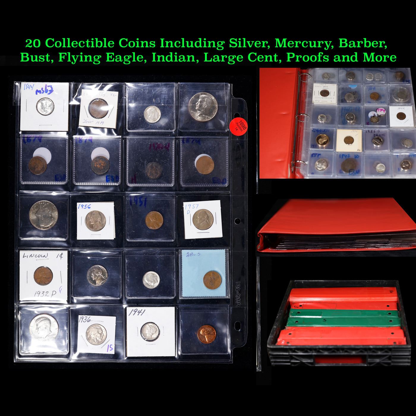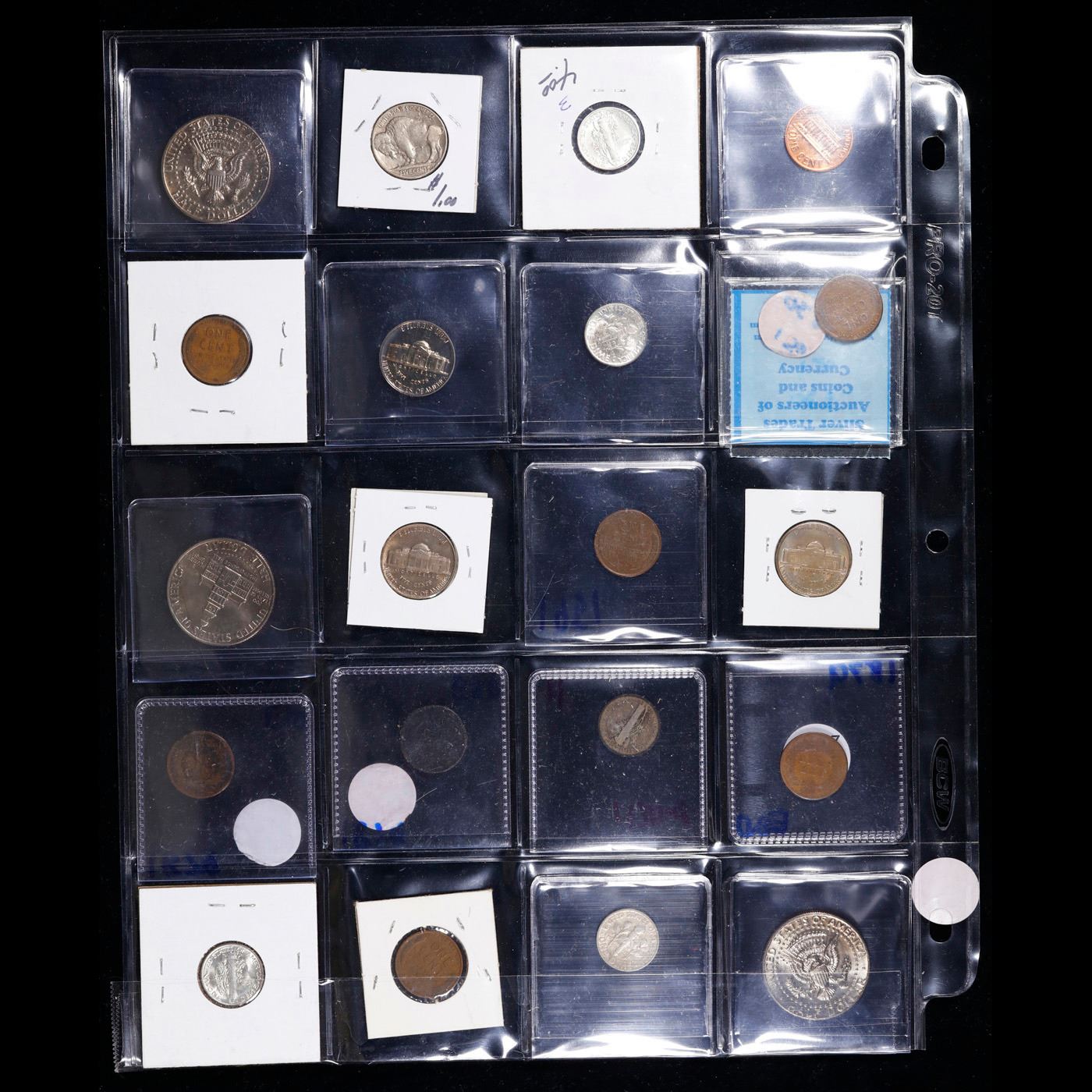 Huge Liifetime Collection - Too Many Coins To Auction Individually - This Lot is For One Page of 20 Coins - All US, No Foreign WOW!. We have received a huge collection of over 10 thousand US coins in flips, 2x2 holders, and 20 coin pages. We are forced, due to limited lots, to sell this collection in pages of 20 coins. All of the pages include Silver Coins. Most contain Indian Cents, Proof Coins, Barber Coinage, Bust Coinage, Lincoln Cents, Flying Eagles, Jefferson Nickels, Roosevelt Dimes, Buffalo Nickels, Eisenhower Dollars, Kennedy Halves, Large Cents including some Draped Bust Large Cents, Mercury Dimes, and Liberty V Nickels. These pages could not be reviewed by anyone in our office due to time constraints. We estimate the value of each page to meet or exceed $200 in value! Good luck and happy hunting.