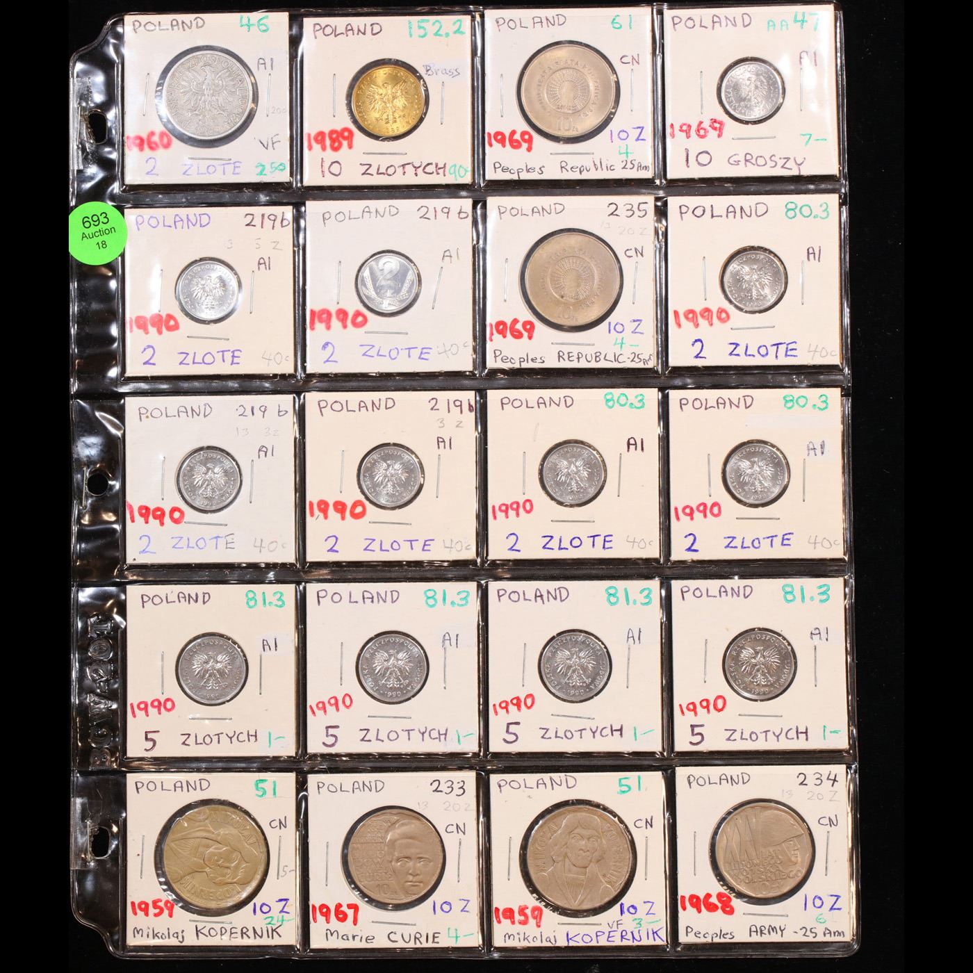 Huge Liifetime Collection - Too Many Coins To Auction Individually - This Lot is For One Page of 20 Poland Coins. We have received a huge collection of over 10 thousand US & Forgin coins in flips, 2x2 holders, and 20 coin pages. We are forced, due to limited lots, to sell this collection in pages of 20 coins. All of these Coins on this Lot Are From Poland. These pages could not be reviewed by anyone in our office due to time constraints. We estimate the value of each page to meet or exceed $200 in value! Good luck and happy hunting.