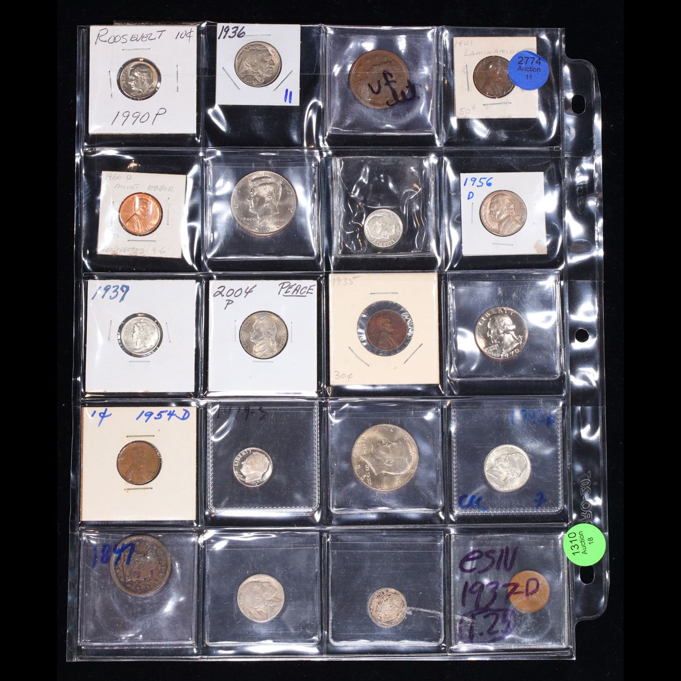 Huge Liifetime Collection - Too Many Coins To Auction Individually - This Lot is For One Page of 20 Coins - All US, No Foreign WOW!. We have received a huge collection of over 10 thousand US coins in flips, 2x2 holders, and 20 coin pages. We are forced, due to limited lots, to sell this collection in pages of 20 coins. All of the pages include Silver Coins. Most contain Indian Cents, Proof Coins, Barber Coinage, Bust Coinage, Lincoln Cents, Flying Eagles, Jefferson Nickels, Roosevelt Dimes, Buffalo Nickels, Eisenhower Dollars, Kennedy Halves, Large Cents including some Draped Bust Large Cents, Mercury Dimes, and Liberty V Nickels. These pages could not be reviewed by anyone in our office due to time constraints. We estimate the value of each page to meet or exceed $200 in value! Good luck and happy hunting.