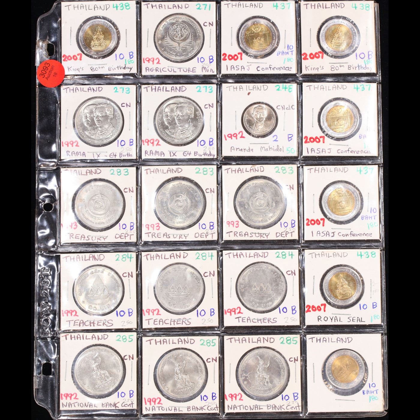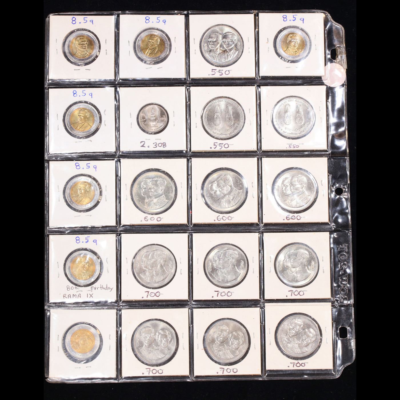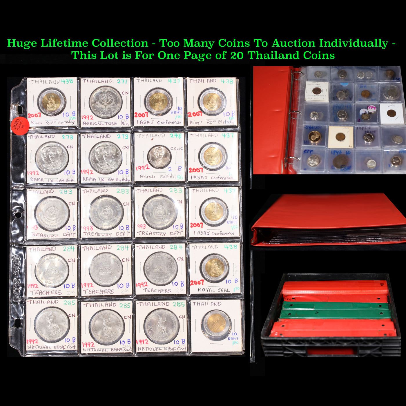 Huge Liifetime Collection - Too Many Coins To Auction Individually - This Lot is For One Page of 20 Thailand Coins. We have received a huge collection of over 10 thousand US & Forgin coins in flips, 2x2 holders, and 20 coin pages. We are forced, due to limited lots, to sell this collection in pages of 20 coins. All of these Coins on this Lot Are From Thailand. These pages could not be reviewed by anyone in our office due to time constraints. We estimate the value of each page to meet or exceed $200 in value! Good luck and happy hunting.