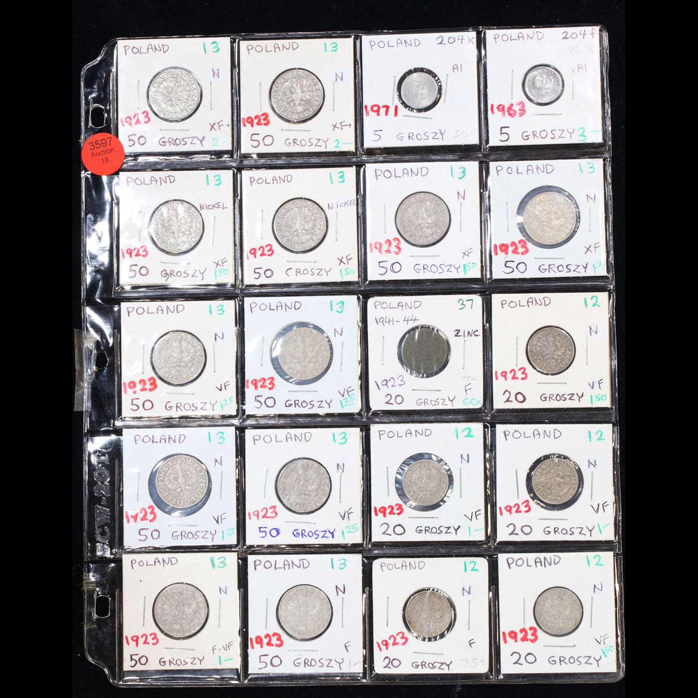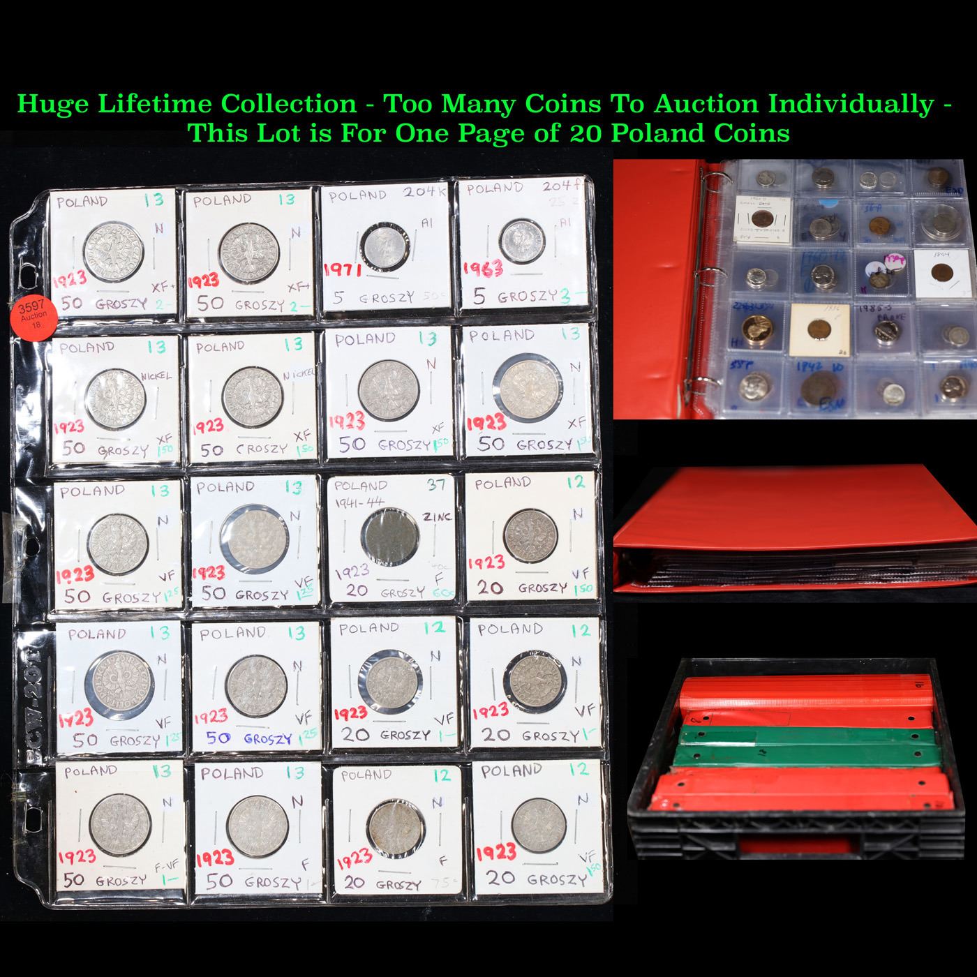 Huge Liifetime Collection - Too Many Coins To Auction Individually - This Lot is For One Page of 20 Poland Coins. We have received a huge collection of over 10 thousand US & Forgin coins in flips, 2x2 holders, and 20 coin pages. We are forced, due to limited lots, to sell this collection in pages of 20 coins. All of these Coins on this Lot Are From Poland. These pages could not be reviewed by anyone in our office due to time constraints. We estimate the value of each page to meet or exceed $200 in value! Good luck and happy hunting.