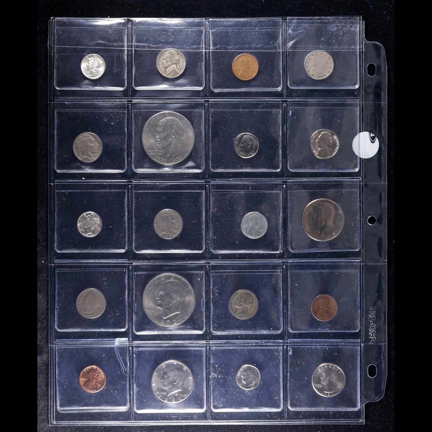 Huge Liifetime Collection - Too Many Coins To Auction Individually - This Lot is For One Page of 20 Coins - All US, No Foreign WOW!. We have received a huge collection of over 10 thousand US coins in flips, 2x2 holders, and 20 coin pages. We are forced, due to limited lots, to sell this collection in pages of 20 coins. All of the pages include Silver Coins. Most contain Indian Cents, Proof Coins, Barber Coinage, Bust Coinage, Lincoln Cents, Flying Eagles, Jefferson Nickels, Roosevelt Dimes, Buffalo Nickels, Eisenhower Dollars, Kennedy Halves, Large Cents including some Draped Bust Large Cents, Mercury Dimes, and Liberty V Nickels. These pages could not be reviewed by anyone in our office due to time constraints. We estimate the value of each page to meet or exceed $200 in value! Good luck and happy hunting.