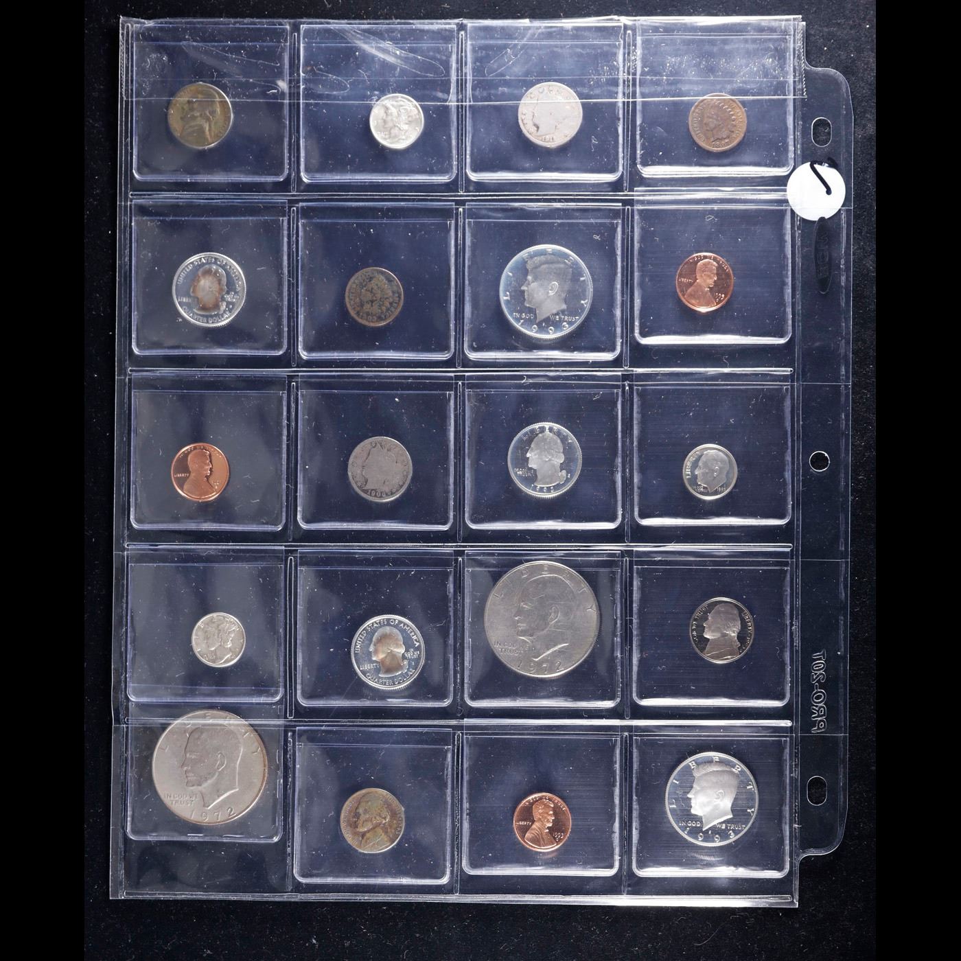 Huge Liifetime Collection - Too Many Coins To Auction Individually - This Lot is For One Page of 20 Coins - All US, No Foreign WOW!. We have received a huge collection of over 10 thousand US coins in flips, 2x2 holders, and 20 coin pages. We are forced, due to limited lots, to sell this collection in pages of 20 coins. All of the pages include Silver Coins. Most contain Indian Cents, Proof Coins, Barber Coinage, Bust Coinage, Lincoln Cents, Flying Eagles, Jefferson Nickels, Roosevelt Dimes, Buffalo Nickels, Eisenhower Dollars, Kennedy Halves, Large Cents including some Draped Bust Large Cents, Mercury Dimes, and Liberty V Nickels. These pages could not be reviewed by anyone in our office due to time constraints. We estimate the value of each page to meet or exceed $200 in value! Good luck and happy hunting.