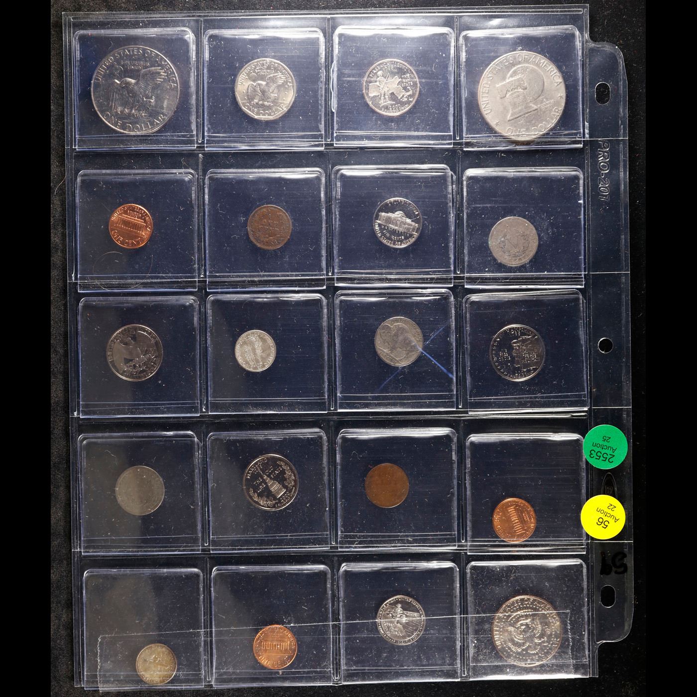 Huge Liifetime Collection - Too Many Coins To Auction Individually - This Lot is For One Page of 20 Coins - All US, No Foreign WOW!. We have received a huge collection of over 10 thousand US coins in flips, 2x2 holders, and 20 coin pages. We are forced, due to limited lots, to sell this collection in pages of 20 coins. All of the pages include Silver Coins. Most contain Indian Cents, Proof Coins, Barber Coinage, Bust Coinage, Lincoln Cents, Flying Eagles, Jefferson Nickels, Roosevelt Dimes, Buffalo Nickels, Eisenhower Dollars, Kennedy Halves, Large Cents including some Draped Bust Large Cents, Mercury Dimes, and Liberty V Nickels. These pages could not be reviewed by anyone in our office due to time constraints. We estimate the value of each page to meet or exceed $200 in value! Good luck and happy hunting.
