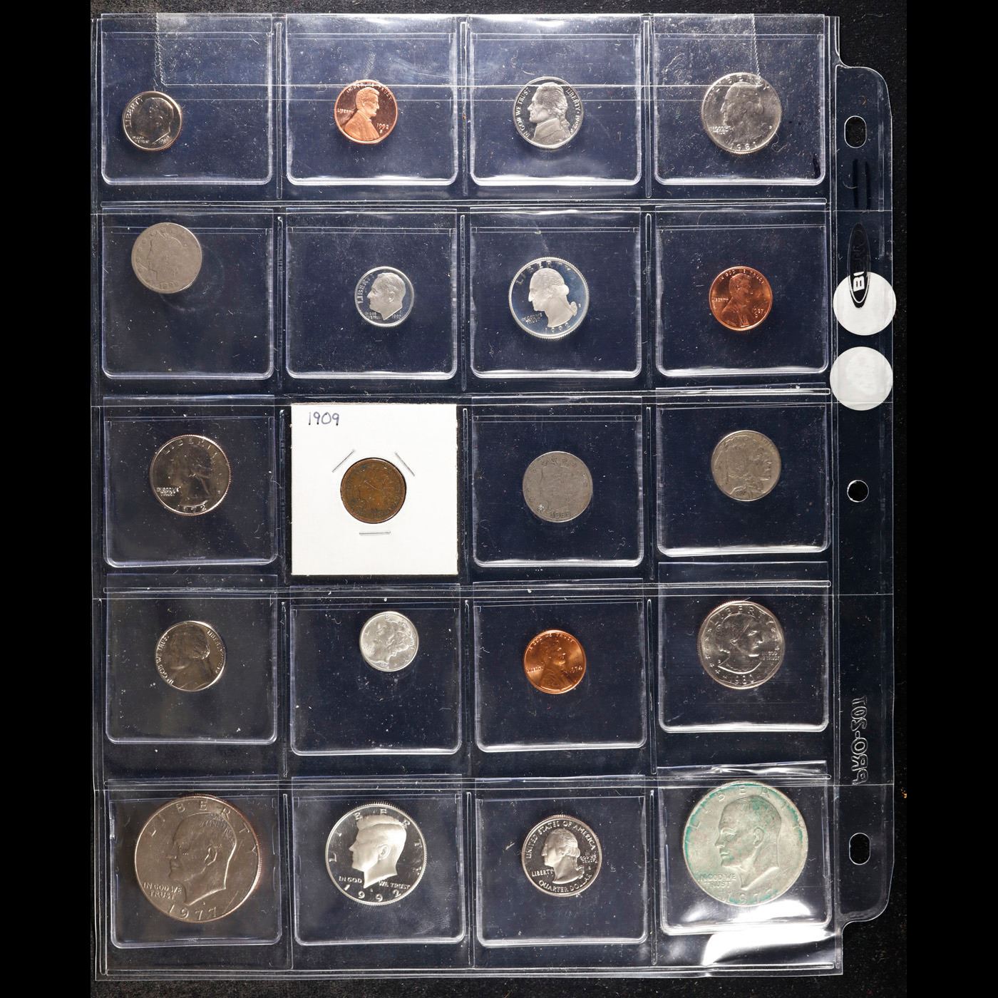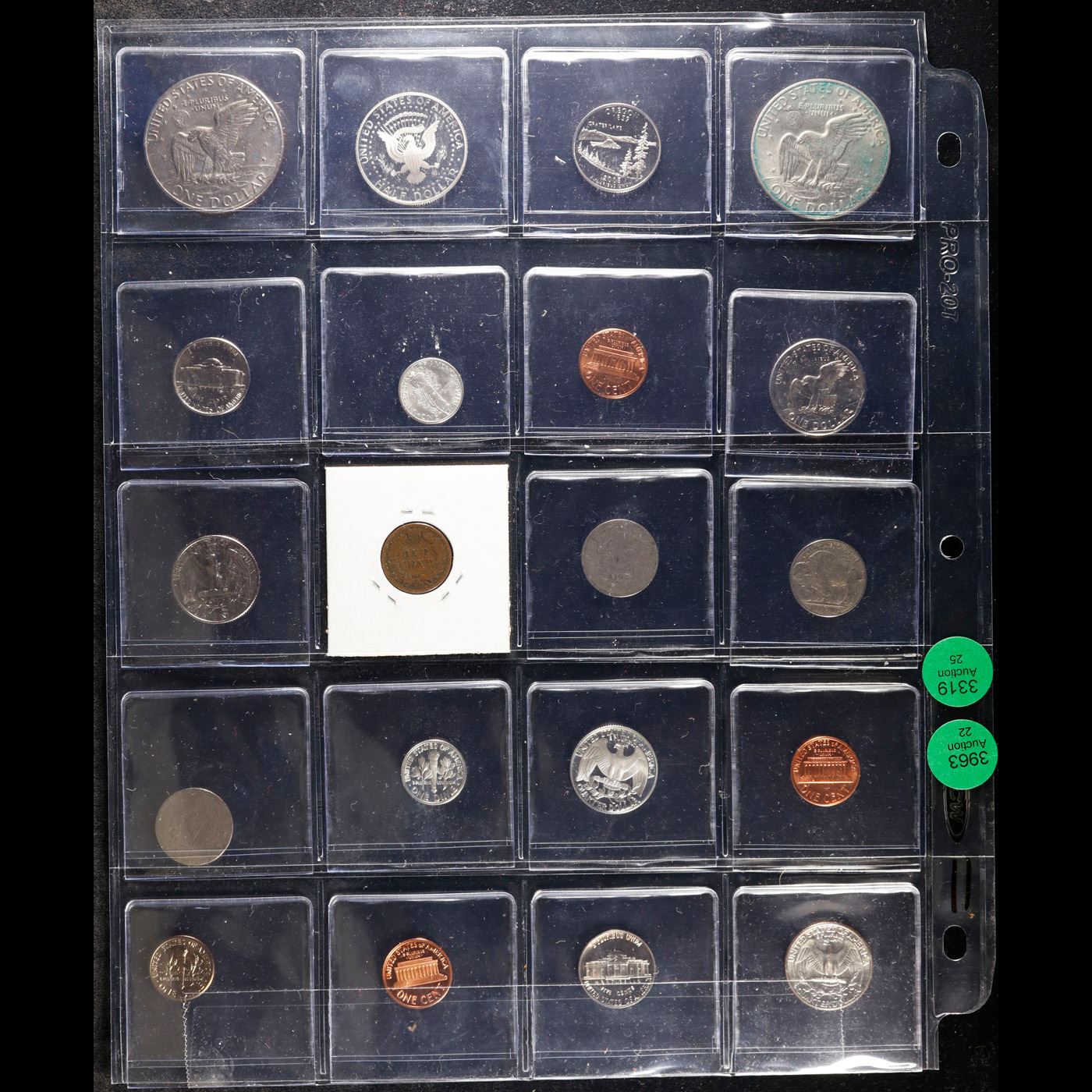 Huge Liifetime Collection - Too Many Coins To Auction Individually - This Lot is For One Page of 20 Coins - All US, No Foreign WOW!. We have received a huge collection of over 10 thousand US coins in flips, 2x2 holders, and 20 coin pages. We are forced, due to limited lots, to sell this collection in pages of 20 coins. All of the pages include Silver Coins. Most contain Indian Cents, Proof Coins, Barber Coinage, Bust Coinage, Lincoln Cents, Flying Eagles, Jefferson Nickels, Roosevelt Dimes, Buffalo Nickels, Eisenhower Dollars, Kennedy Halves, Large Cents including some Draped Bust Large Cents, Mercury Dimes, and Liberty V Nickels. These pages could not be reviewed by anyone in our office due to time constraints. We estimate the value of each page to meet or exceed $200 in value! Good luck and happy hunting.