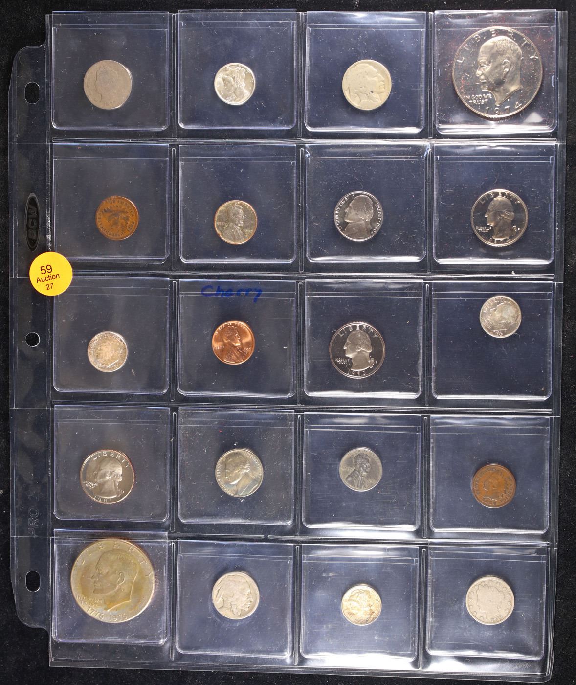 Huge Liifetime Collection - Too Many Coins To Auction Individually - This Lot is For One Page of 20 Coins - All US, No Foreign WOW!. We have received a huge collection of over 10 thousand US coins in flips, 2x2 holders, and 20 coin pages. We are forced, due to limited lots, to sell this collection in pages of 20 coins. All of the pages include Silver Coins. Most contain Indian Cents, Proof Coins, Barber Coinage, Bust Coinage, Lincoln Cents, Flying Eagles, Jefferson Nickels, Roosevelt Dimes, Buffalo Nickels, Eisenhower Dollars, Kennedy Halves, Large Cents including some Draped Bust Large Cents, Mercury Dimes, and Liberty V Nickels. These pages could not be reviewed by anyone in our office due to time constraints. We estimate the value of each page to meet or exceed $200 in value! Good luck and happy hunting.