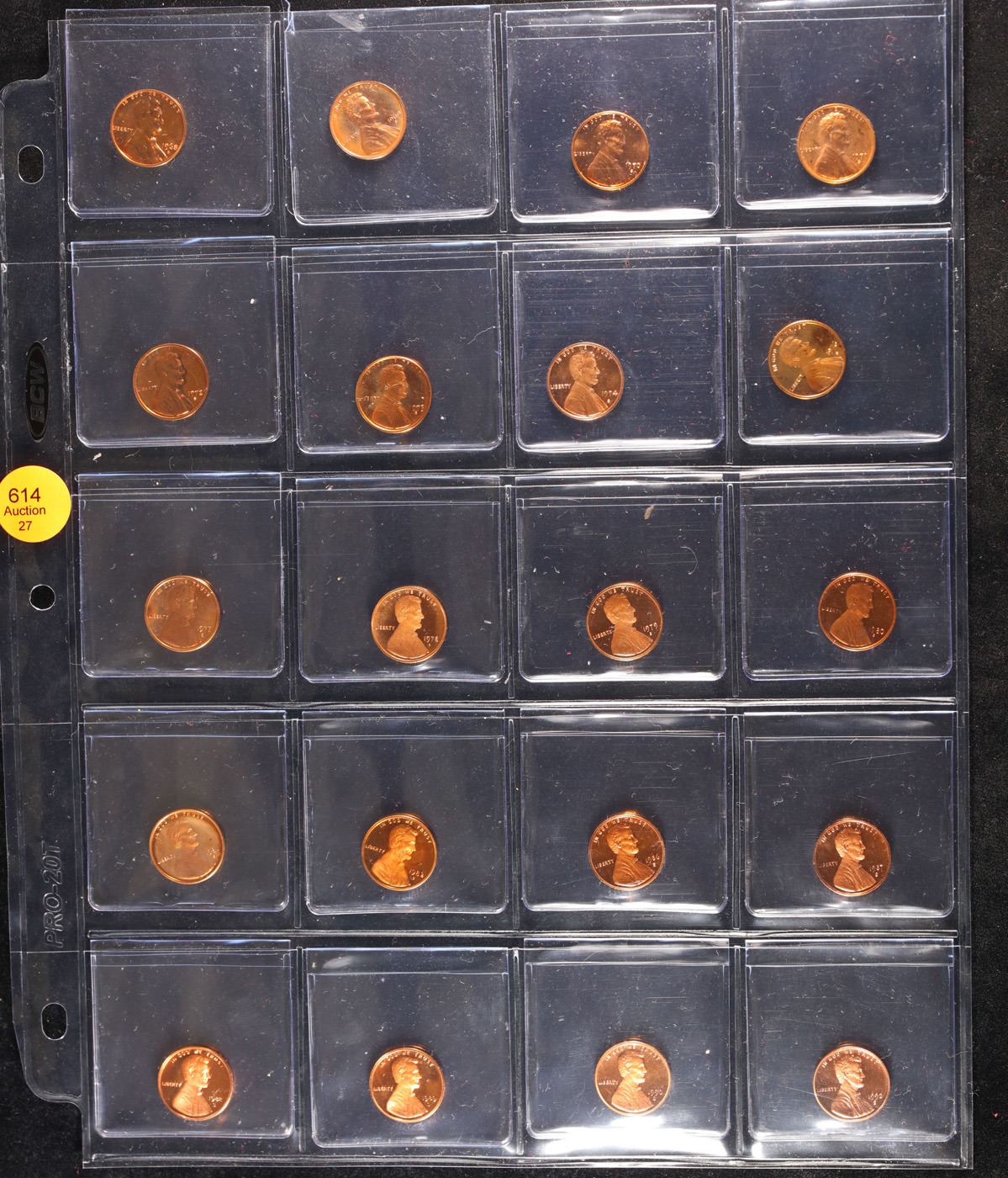 Huge Liifetime Collection - Too Many Coins To Auction Individually - This Lot is For One Page of 20 Proof Lincoln Cents Dates Range From 1970-2006. We have received a huge collection of over 10 thousand US coins in flips, 2x2 holders, and 20 coin pages. We are forced, due to limited lots, to sell this collection in pages of 20 coins. This Page is For 20 Proof Lincoln Cents. Trends 1983-s pr70 DCAM $34, 1981-s pr69 DCAM $15 1980-s pr69 DCAM $15, 1972-s pr69 $400, 1969-s pr69 DCAM $625, 1990-s pr69 DCAM $14, 1989-s pr69 DCAM $14, 1987-s pr69 DCAM $14, 1998-s pr69 DCAM $14, 1974-s pr69 DCAM $32, 1973-s pr69 DCAM $20, 1968-s pr69 DCAM $1,650, 2006-s pr69 DCAM $14, 2003-s pr69 DCAM $14, 2002-s pr69 DCAM $14, 2000-s pr69 DCAM $14, 1996-s pr69 DCAM $14, 1985-s pr69 DCAM $14, 1986-s pr69 DCAM $14, 1999-s pr69 DCAM $14. We estimate the value of each page to meet or exceed $200 in value! Good luck and happy hunting.