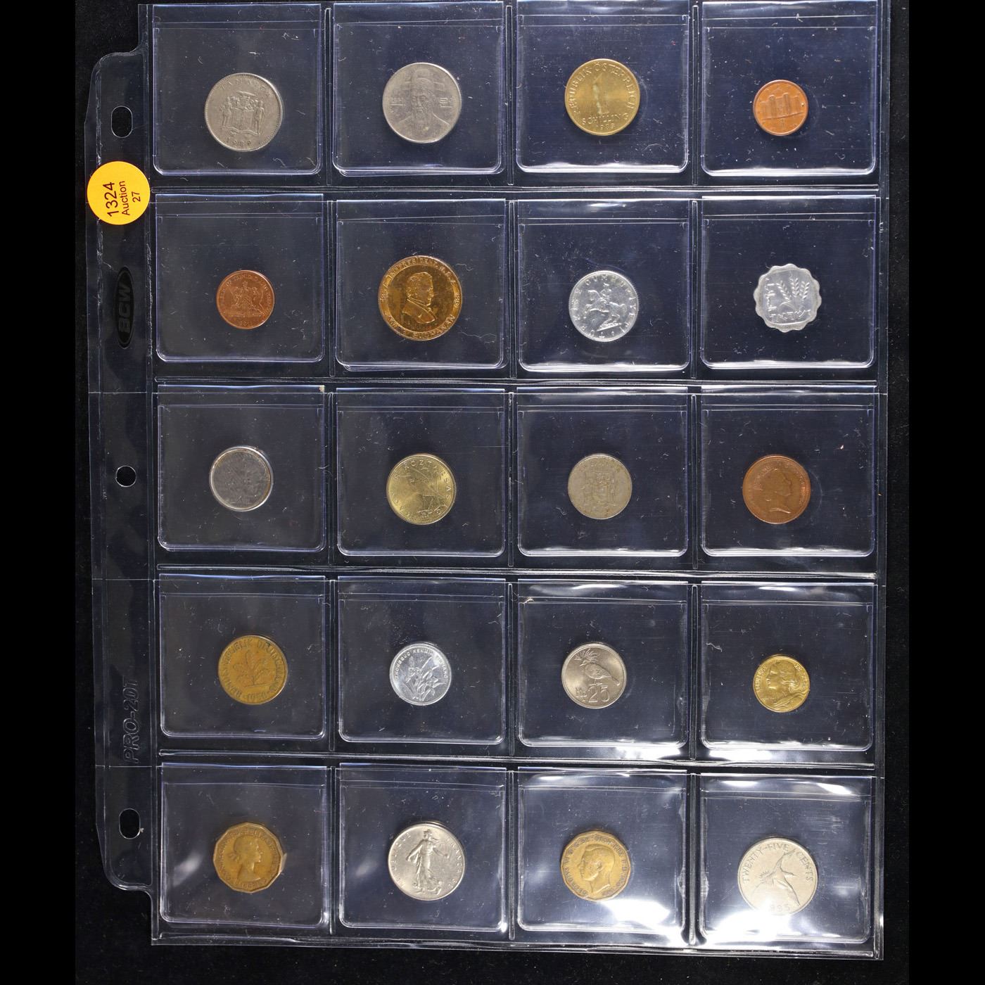 Huge Liifetime Collection - Too Many Coins To Auction Individually - This Lot is For One Page of 20 Foreign Coins. We have received a huge collection of over 10 thousand US coins in flips, 2x2 holders, and 20 coin pages. We are forced, due to limited lots, to sell this collection in pages of 20 coins. All of the pages include Silver Coins. Most contain Indian Cents, Proof Coins, Barber Coinage, Bust Coinage, Lincoln Cents, Flying Eagles, Jefferson Nickels, Roosevelt Dimes, Buffalo Nickels, Eisenhower Dollars, Kennedy Halves, Large Cents including some Draped Bust Large Cents, Mercury Dimes, and Liberty V Nickels. These pages could not be reviewed by anyone in our office due to time constraints. We estimate the value of each page to meet or exceed $200 in value! Good luck and happy hunting.