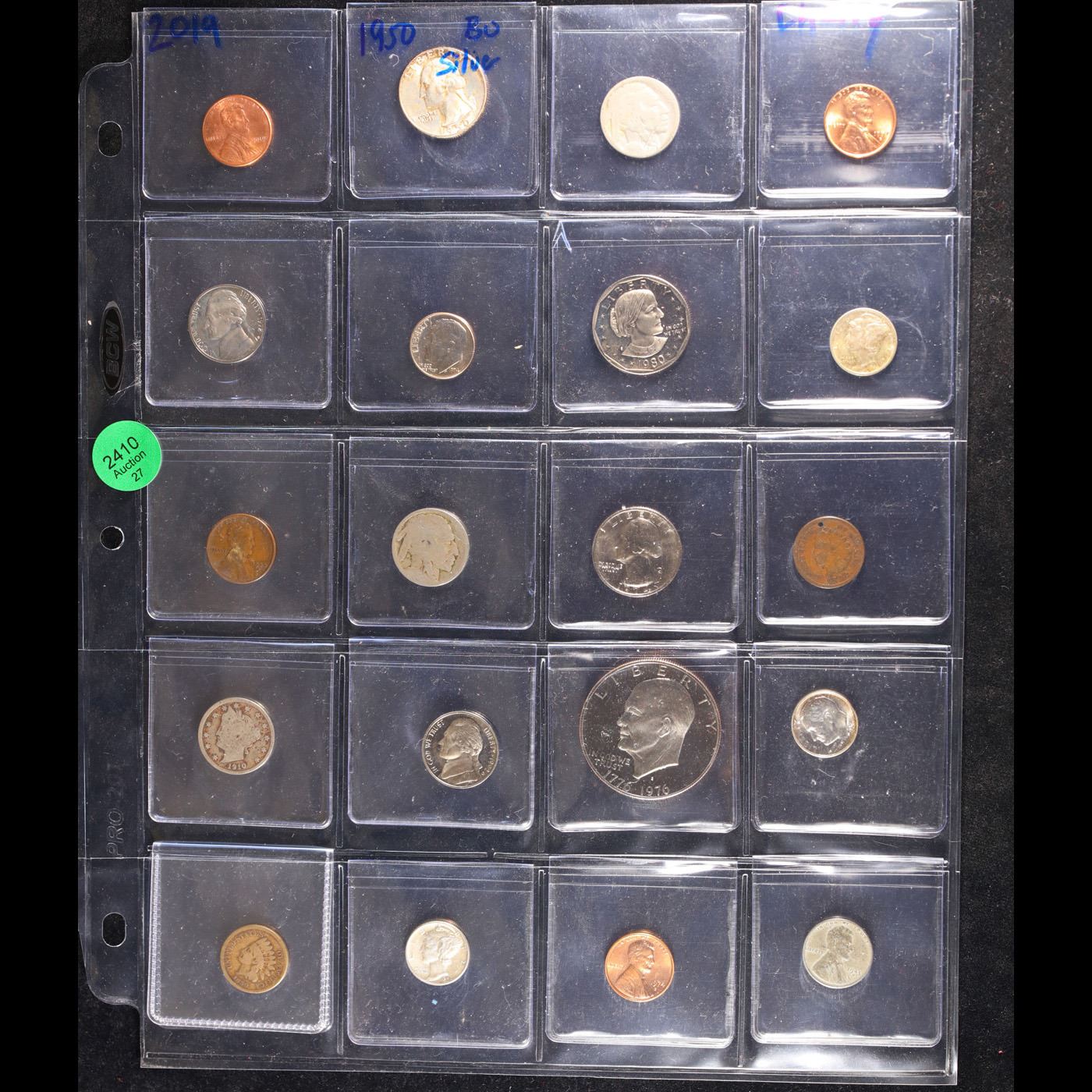 Huge Liifetime Collection - Too Many Coins To Auction Individually - This Lot is For One Page of 20 Coins - All US, No Foreign WOW!.        We have received a huge collection of over 10 thousand US coins in flips, 2x2 holders, and 20 coin pages. We are forced, due to limited lots, to sell this collection in pages of 20 coins. All of the pages include Silver Coins. Most contain Indian Cents, Proof Coins, Barber Coinage, Bust Coinage, Lincoln Cents, Flying Eagles, Jefferson Nickels, Roosevelt Dimes, Buffalo Nickels, Eisenhower Dollars, Kennedy Halves, Large Cents including some Draped Bust Large Cents, Mercury Dimes, and Liberty V Nickels. These pages could not be reviewed by anyone in our office due to time constraints. We estimate the value of each page to meet or exceed $200 in value! Good luck and happy hunting.